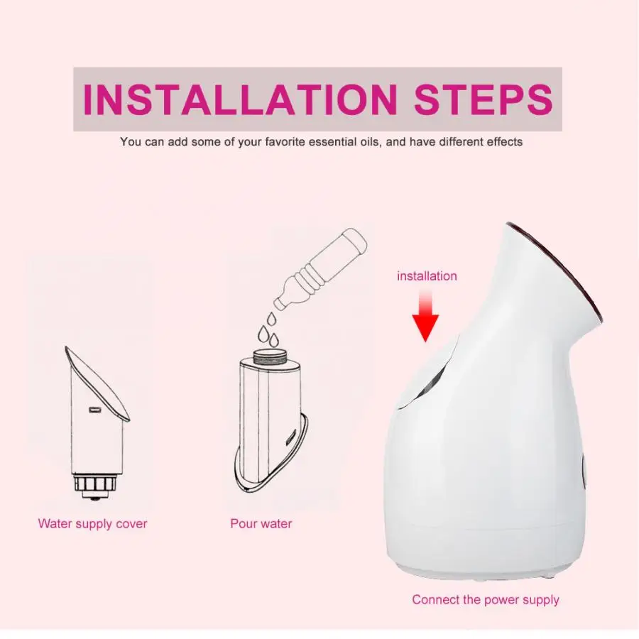 Информация о товаре: Разработан специально для азиатских женщин, красивая форма, прост в использовании Быстрое Высвобождение пара в течение трех минут, количество пара 100 г в час 50 мл экологический Алюминиевый горшок, легко моется, против ржавчины и коррозии Три-block (цветовой блок), переключатель (0/1/2) свободно регулировать в соответствии с фактическими потребностями Эффекты: Способствует регенерации коллагена, восстанавливает нежную и гладкую кожу Ослабьте пигментные пятна, чтобы сохранить ваш красивый цвет лица Убивает бактерии кожи и подавляет акне, восстанавливает баланс PH вашей кожи Смягчайте кутикулу и улучшайте впитывающую способность кожи, чтобы поглощать достаточное питание