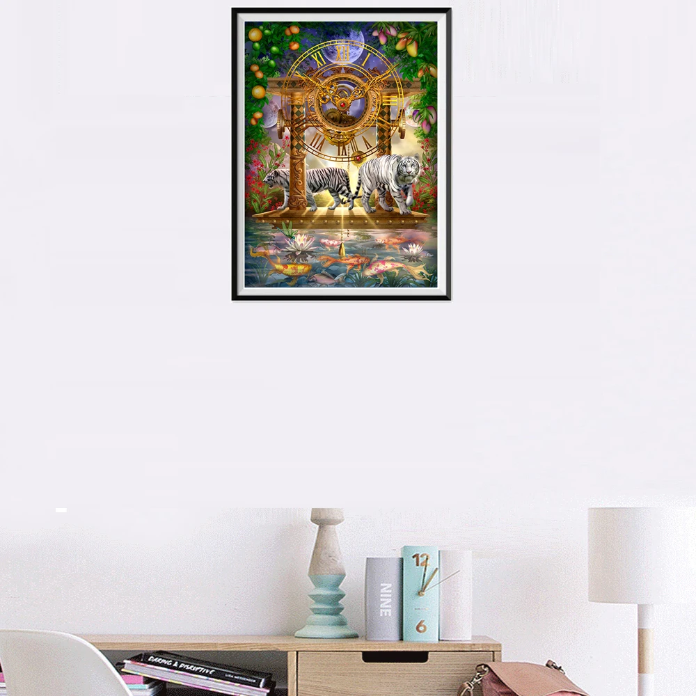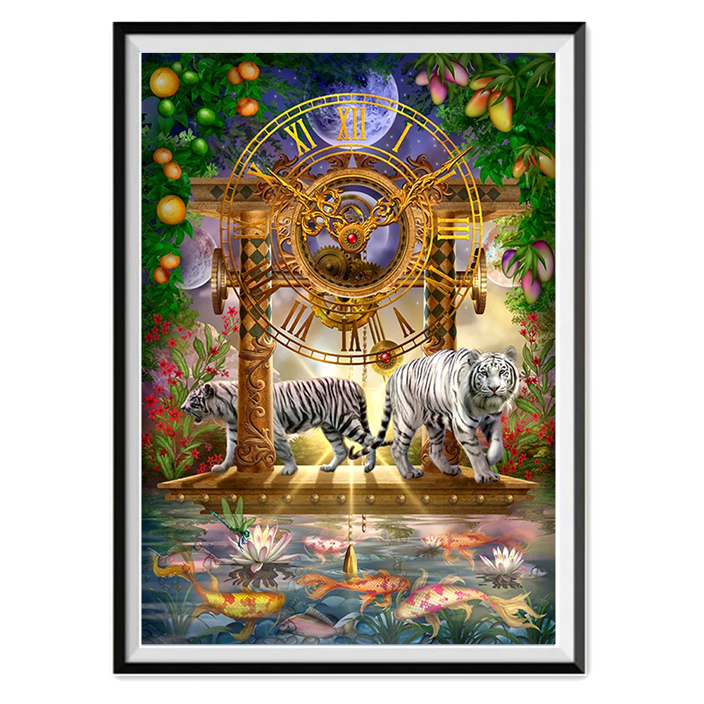Два тигра и часы DIY Кристалл полный дрель квадратный 5D алмазная живопись Набор для вышивки крестом мозаика круглые стразы домашний декор