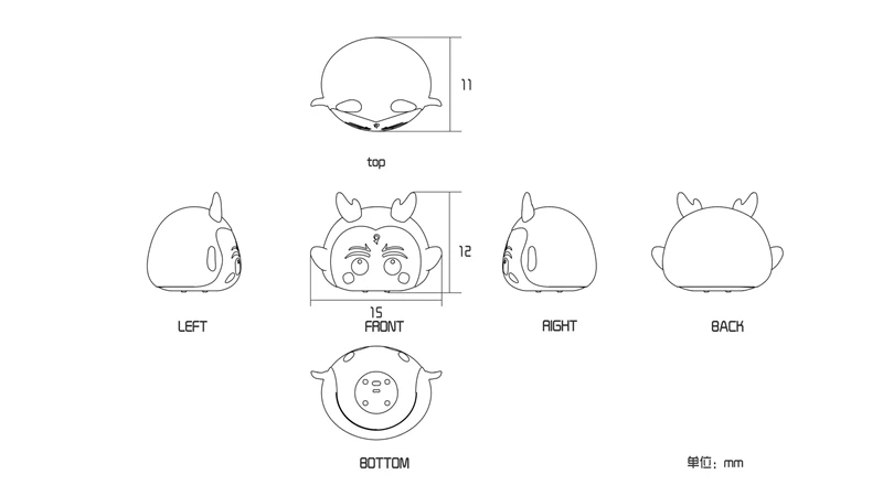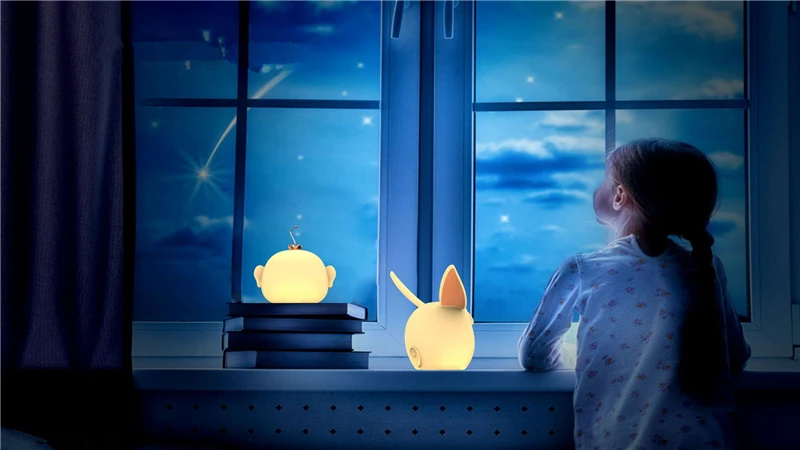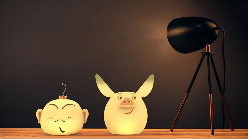 1. Метод управления: кнопка переключения + поверхность сенсорная для изменения цвета 2. Индукционный светодиодный светильник 3. Материалы: силикон + АБС 4. Светильник, излучающий: белый + RGB 5. Аобин, нежан, тайи, свиньи персонажи на выбор