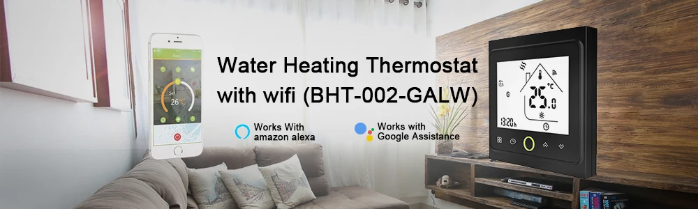1. Модель BHT-002-GALW, BHT-002-GBLW, BHT-002-GCLW поддерживает функцию Wifi. 2. Все модели поставляются с внутренним датчиком воздуха. Но внешний Датчик пола является дополнительным, только модель BHT-002-GB и BHT-002-GB (WiFi) содержат внешний датчик пола.