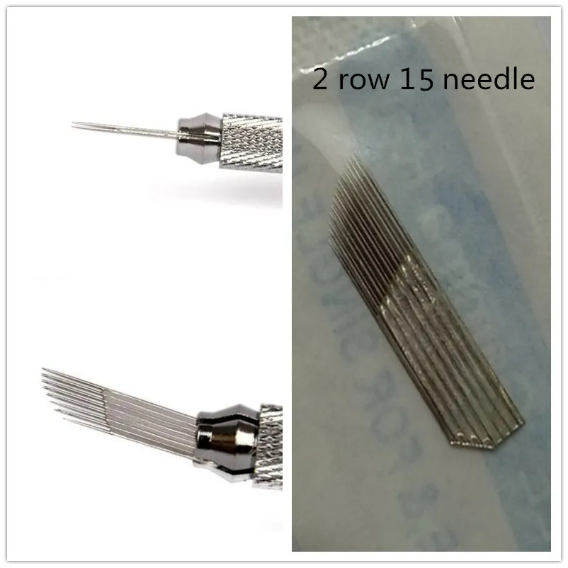 50 шт., 2 ряда, 15 игл, Перманентный макияж, тату для бровей, лезвие, микроблейдинг, иглы для 3D вышивки, ручная тату-ручка, машина