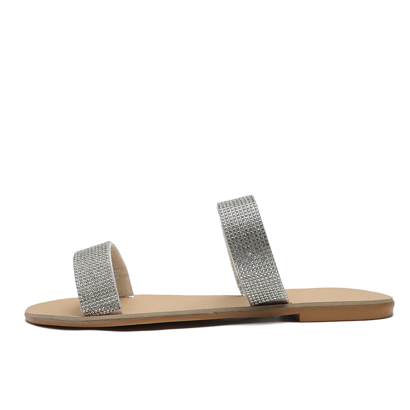 Сандалии со стразами; Женские летние шлепанцы с открытым носком; Сандалии больших размеров; Пляжные шлепанцы; Женская летняя обувь; Цвет золотой, серебряный