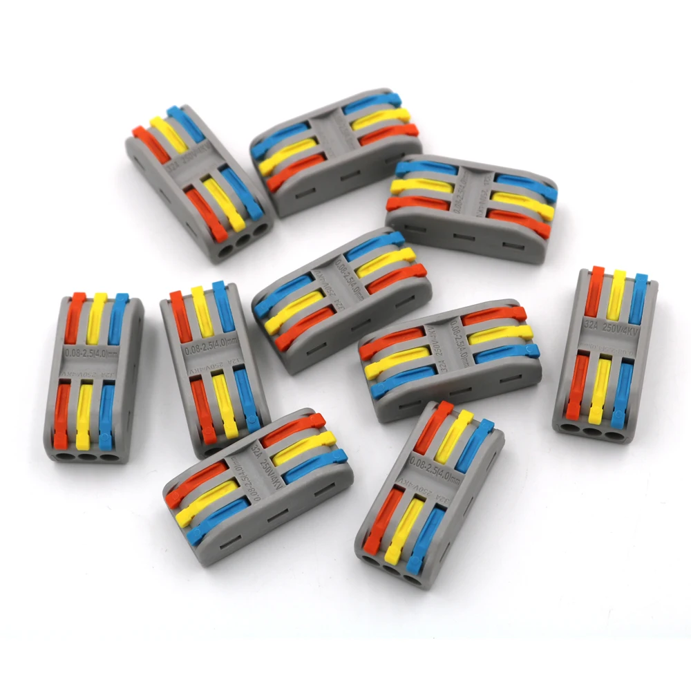 Название продукта: 3 полюса на 3 полюса Универсальный соединитель проводаМодель: PT-3-3Номинальное напряжение: 400 ВНоминальное импульсное напряжение: 4КВМатериал изоляции: модифицированный нейлон (PA66)Материал контакта: Фосфорная медьСечение провода: 0,08 ~ 2.5mm2 (один жесткий провод), 0,08 ~ 4mm2 (мульти мягкий провод)Цвет: серый + оранжевыйНоминальный ток: 32AНоминальная мощность: 7 кВтКалибр: 28 ~ 12awgУпаковка:10 шт. x PT-3-3 коннектор
