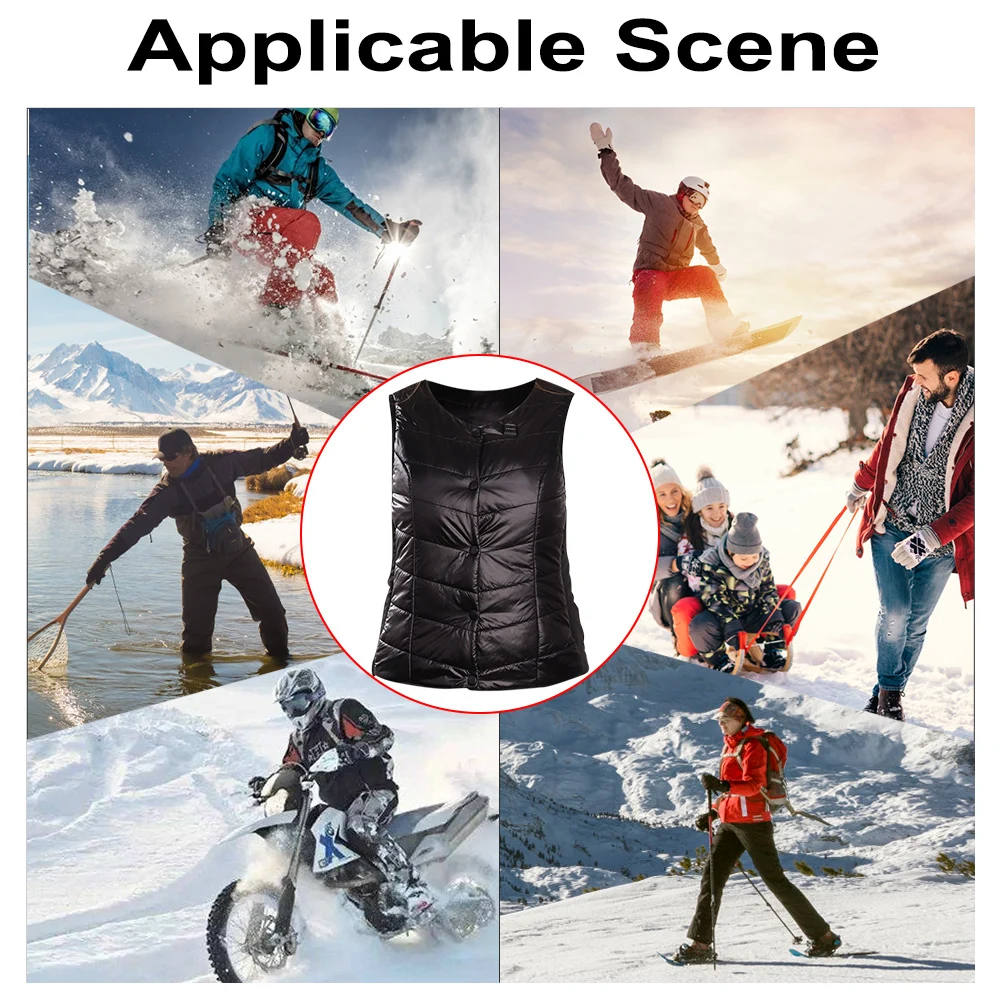 3. Зарядка через usb: аккумулятор не входит в комплект. Этот нагревательный жилет не требует специального источника питания. Он подходит для мобильных источников питания 5 В/2 А или выше. Вы можете поменять батарею в любое время, так что не беспокойтесь о разрядке батареи.