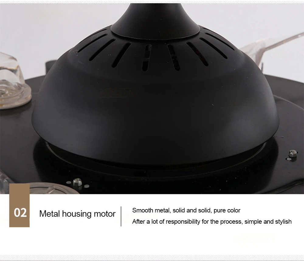 Невидимое лезвие вентилятора Стеклянный абажур Железный корпус лампы Мудрость дарит красоту жизни Свободный и умный опыт управления, надежное и надежное качество