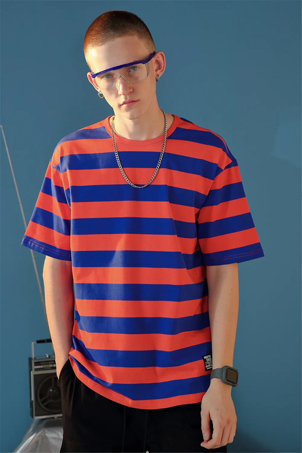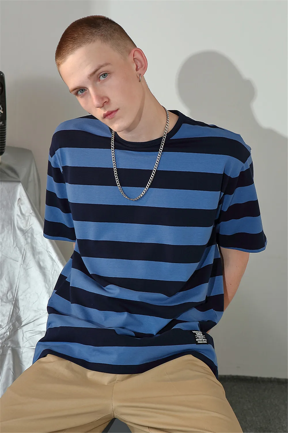 Raibaallu Мужская рубашка Весна/Лето Футболка свободная полосатая с коротким рукавом дикая Повседневная хлопковая Футболка оверсайз Топ Мужская одежда 3 цвета