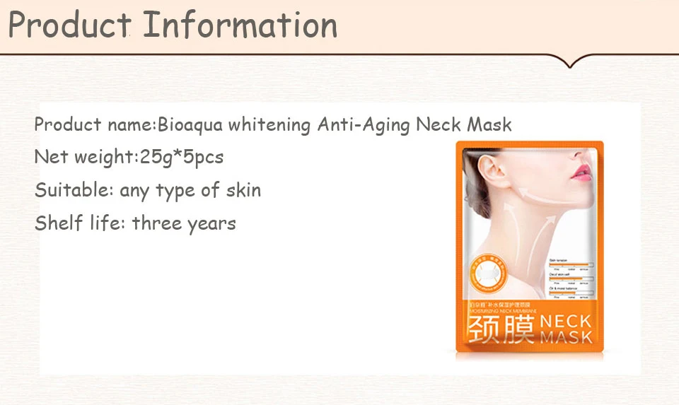 Особенности: 100% Новинка и высокое качество! Питают кожу, добавляют необходимую воду Увлажнение, увлажнение кожи Помогает улучшить сухость кожи Название продукта: маска для шеи Особенности: увлажнение, увлажнение, контроль жирности, отбеливание Вес нетто: 17 г * 5 шт.