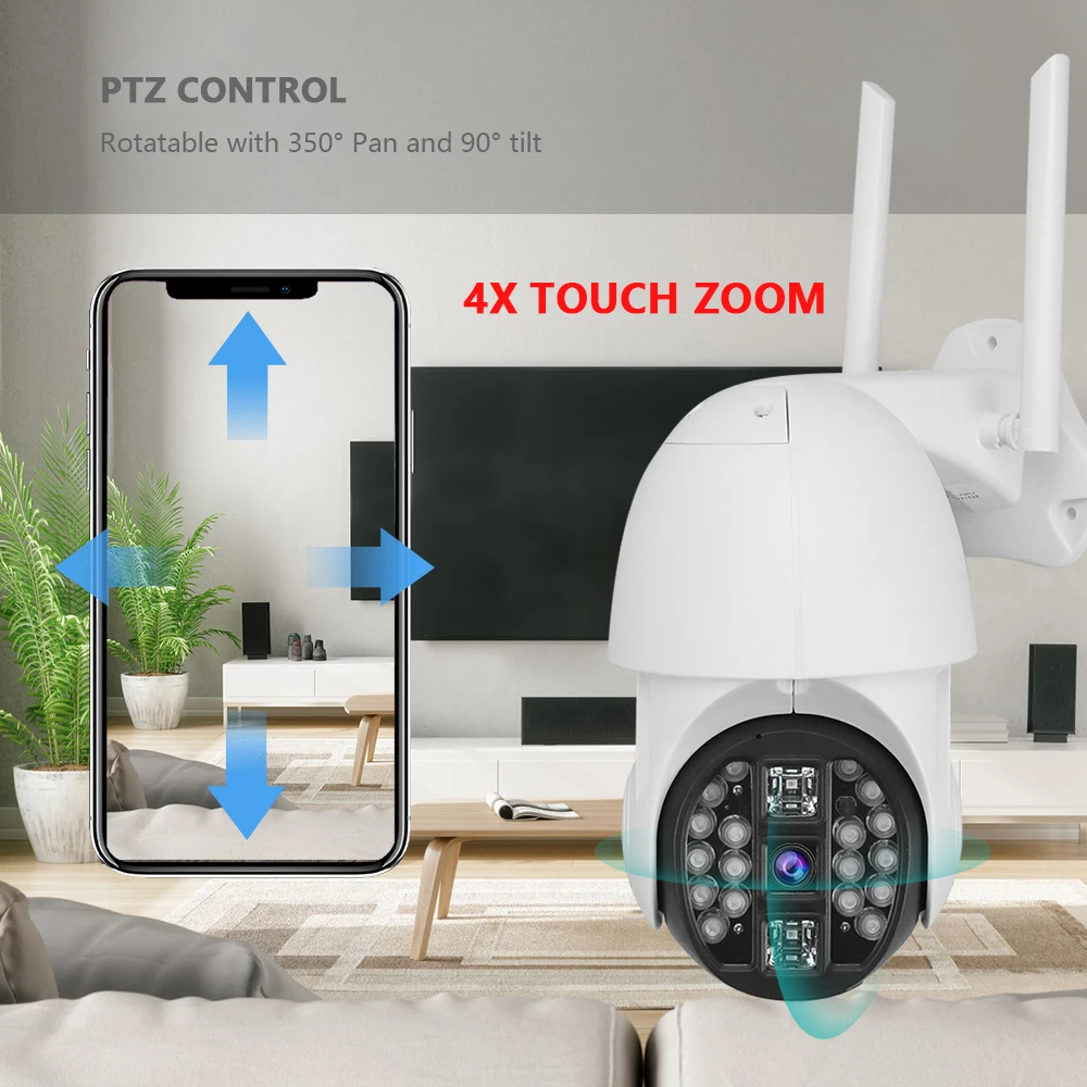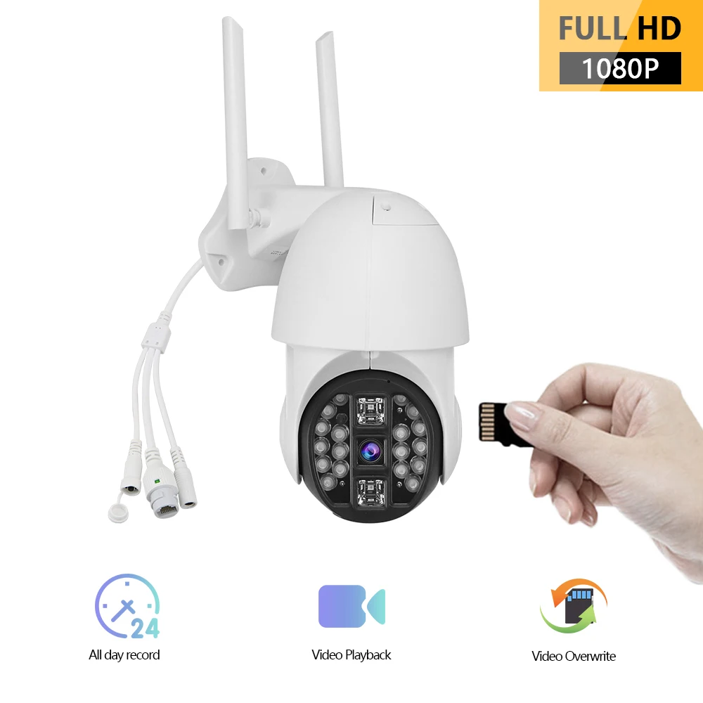 1080P PTZ IP камера Облачное хранилище Беспроводная WIFI Охрана на открытом воздухе Скоростной купол CCTV P2P 4X Цифровое увеличение Монитор включен.
