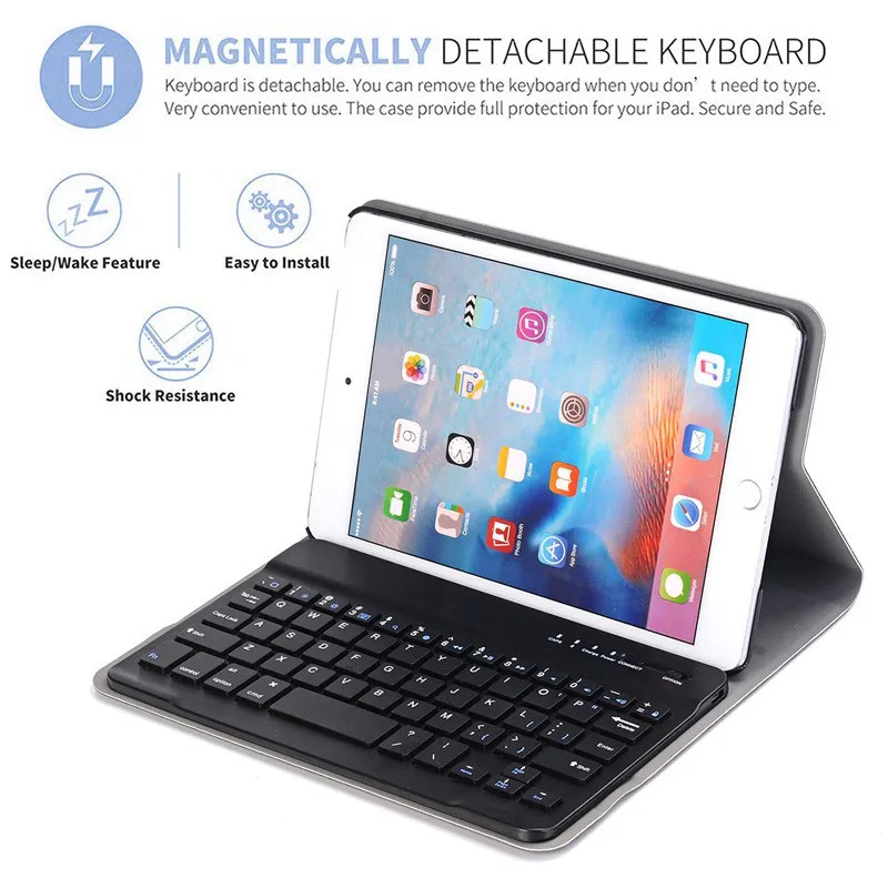 Съемный Bluetooth клавиатура Кожаный чехол с клавиатурой для iPad 10,2 "7th Gen/Air 10,5 Особенности: Модель: для Apple iPad 10,2 7th Gen 2019/воздуха 3rd Gen 2019 / Pro 10,5 2017 Чистый металл Размеры: 25,5 x 18,5x1,8 см Размер упаковки: 27x20 x 2,3 см Кожа Материал корпуса: Супер волокно темные бархатные Клавиатура Материал: АБС-пластик Пластик Чип Bluetooth: bluetooth 3,0 Расстояние интерфейса: 10 м Клавиатура: английский Батарея Ёмкость: 180mA Время работы в режиме ожидания: 80 дней Время непрерывной работы: 60 ч Время зарядки: 1,5-2 чПосылка список: