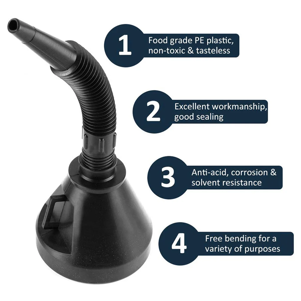 А высокого качества воронку при помощи Гибкий носик, подходящий практически для всех жидкостей.
