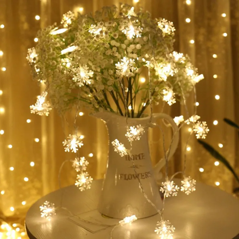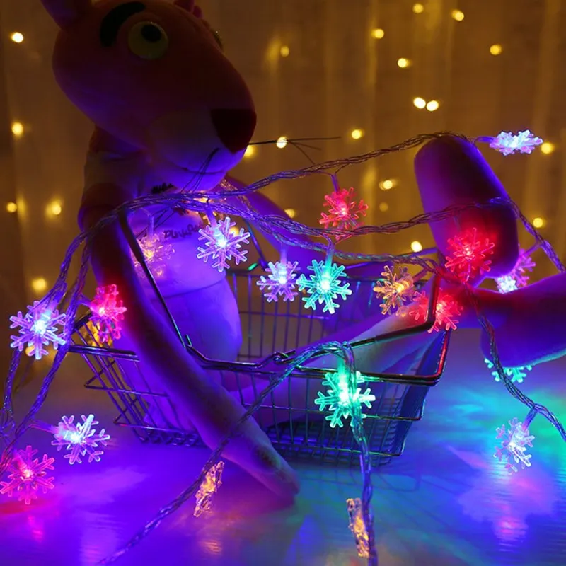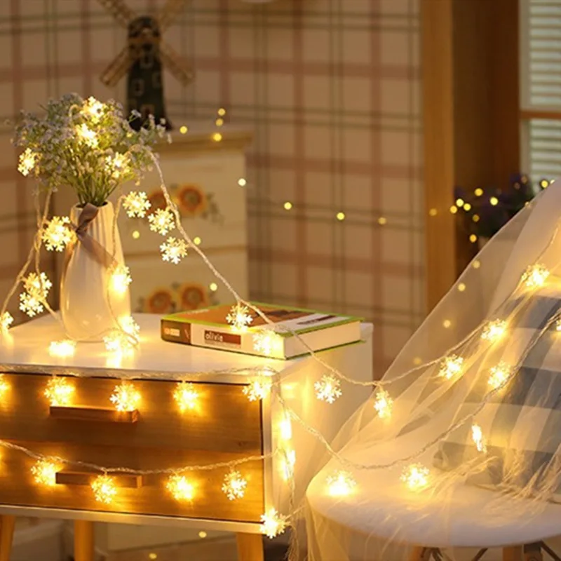 Примечание: 2 м с 10 шт снежинками, 3 м с 20 шт снежинками. Этот продукт не содержит 2 5А батареи, вам нужно подготовить самостоятельно.