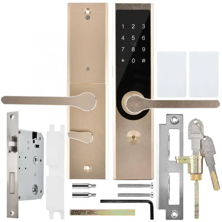 Это профессиональный комплект системы блокировки дверей, который идеально подходит для дома, офиса, отеля и квартиры приложений безопасности и поддерживает подключение к мобильным телефонам через Bluetooth 4,0. Изготовлен из космического алюминиевого сплава, имеет низкую плотность, высокую прочность, коррозионную стойкость и вес светильник. Вы можете открыть дверь с помощью карты разблокировки, пароля, приложения или механического ключа. Безопасно для вас и вашей семьи быть в безопасности весь день, легко установить и использовать, и подходит для большинства дверей с толщиной двери 40-110 мм.