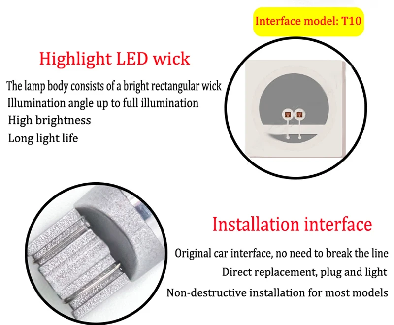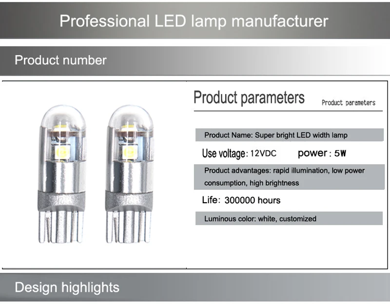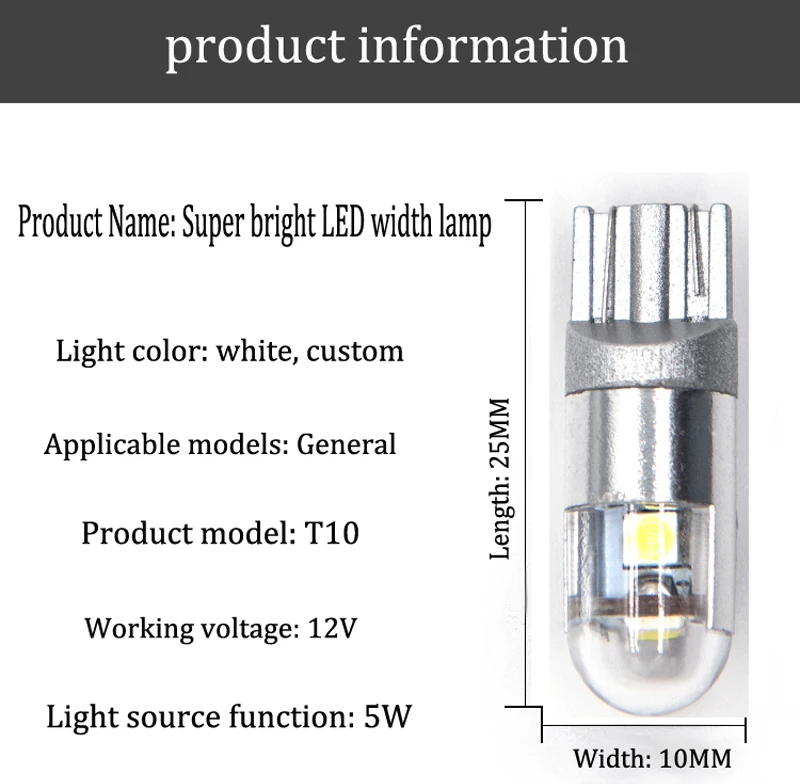 Особенности: -Использование микросхемы высокой мощности 3030 -Новая светодиодный технология сокращает энергопотребление 40% до 80%. -Алюминиевый чехол с высокой теплопроводностью и изысканным внешним видом. -Загорается в микросекундах и быстро реагирует. -Светодиодный светильник, яркость 1 Вт эквивалентна 5 Вт традиционного автомобильного освещения. -Светодиодный светильник имеет длительный срок службы, со средним сроком службы 50000 часов. -Простая установка, просто подключи и работай. -Применимо: ширина светильник/боковой поворотный светильник/светильник номерного знака/Автомобильный светильник/дверной светильник/внутренний светильник