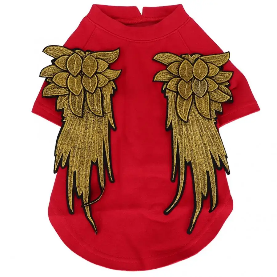 Красный хлопок милая одежда для домашних животных Костюм Одежда с золотыми крыльями для кошек собак