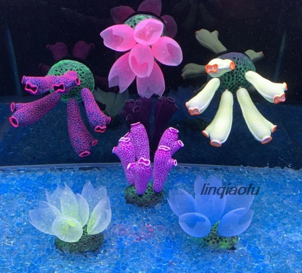 Новое программное обеспечение для моделирования силиконовый цветок коралловый водный аквариум пейзаж светящееся украшение