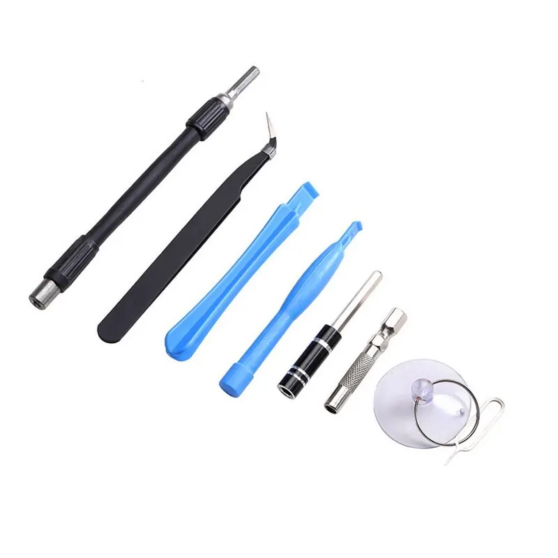 Посылка: 1 x Магнитная рукоятка, 1 x мягкий удлинитель, 1 x Жесткий удлинитель, 1 x пинцет, 1 x держатель ящика, 1 x штифт, 1 x намагничиватель, 1 x присоска, 2 x Tr i-angle picks, 2 x spudgers, 8 x sockets, 90 x precision bits