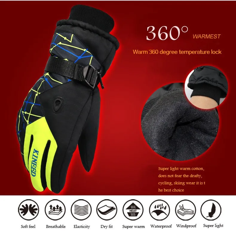 Водонепроницаемые лыжные перчатки Boodun с 3 пальцами ветрозащитные для снегохода