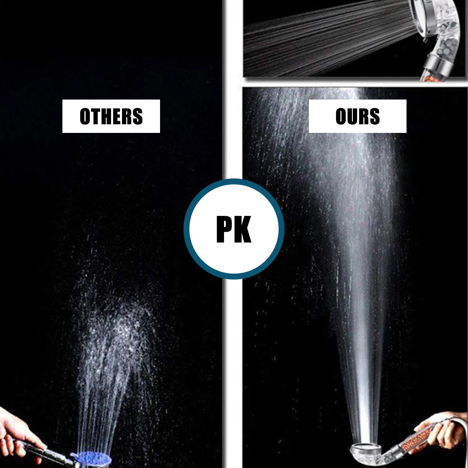 [Высокий Давление]Технология микросопла делает отверстия на выходе меньше и плотнее, увеличивая скорость потока воды, тем самым увеличивая давление воды.
