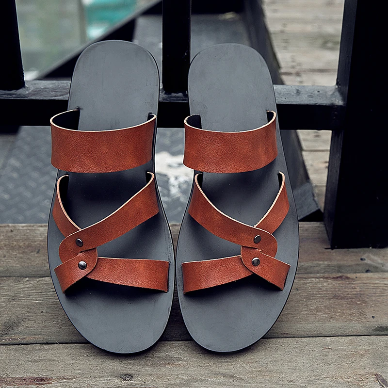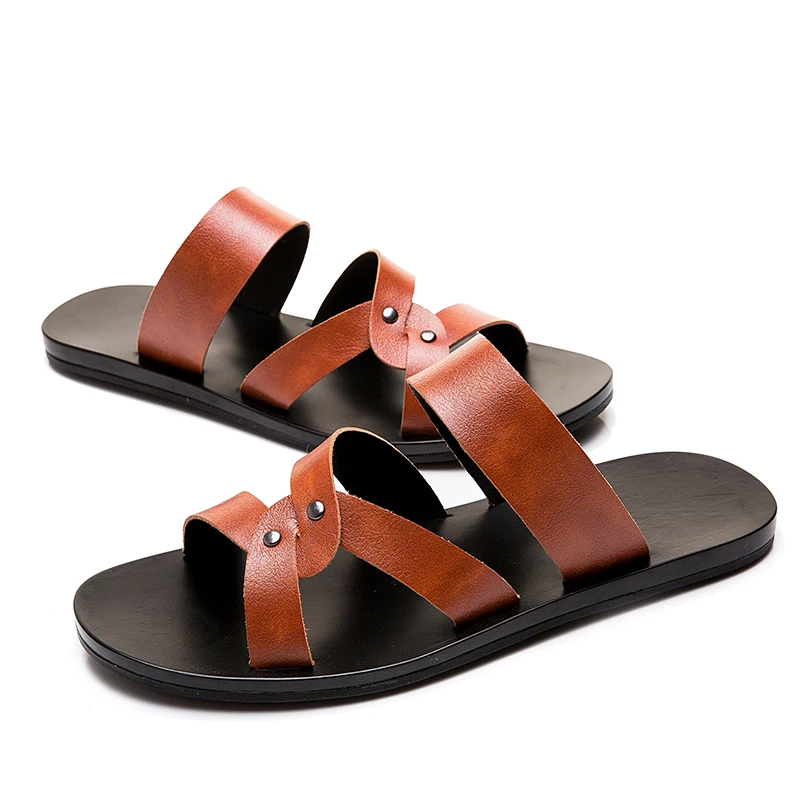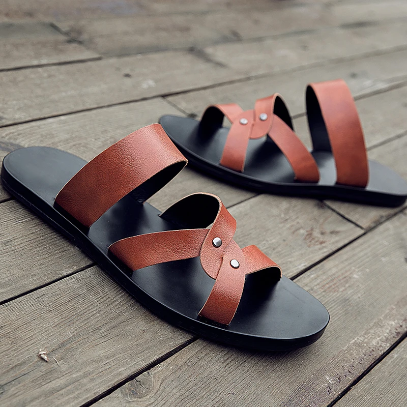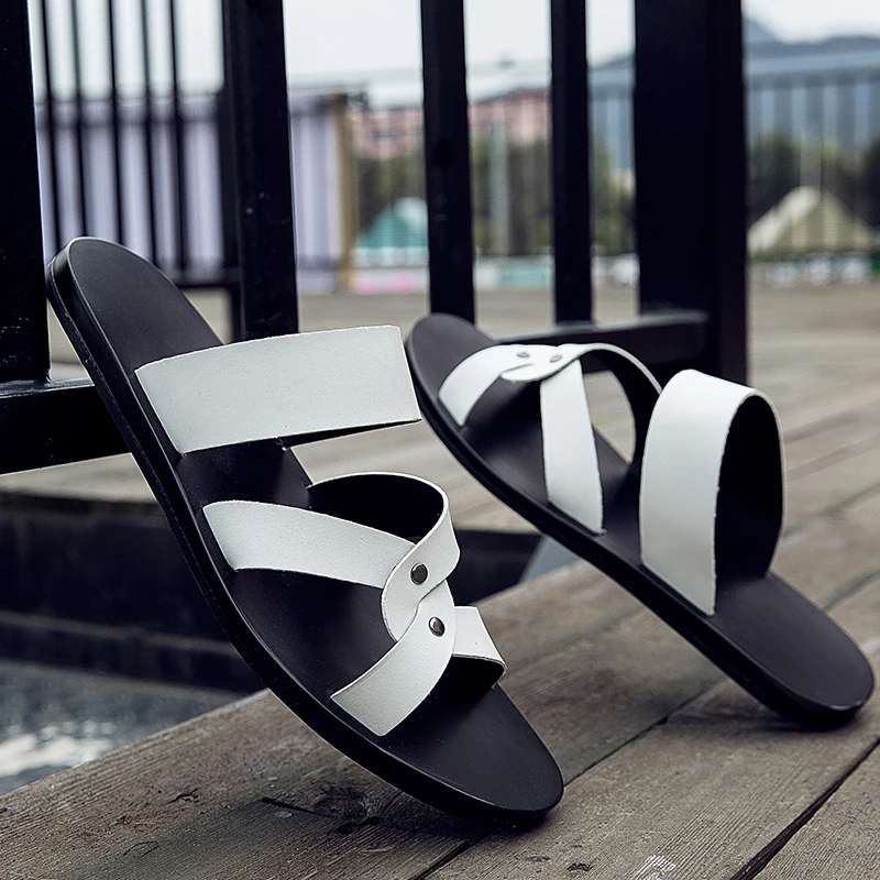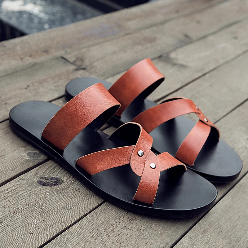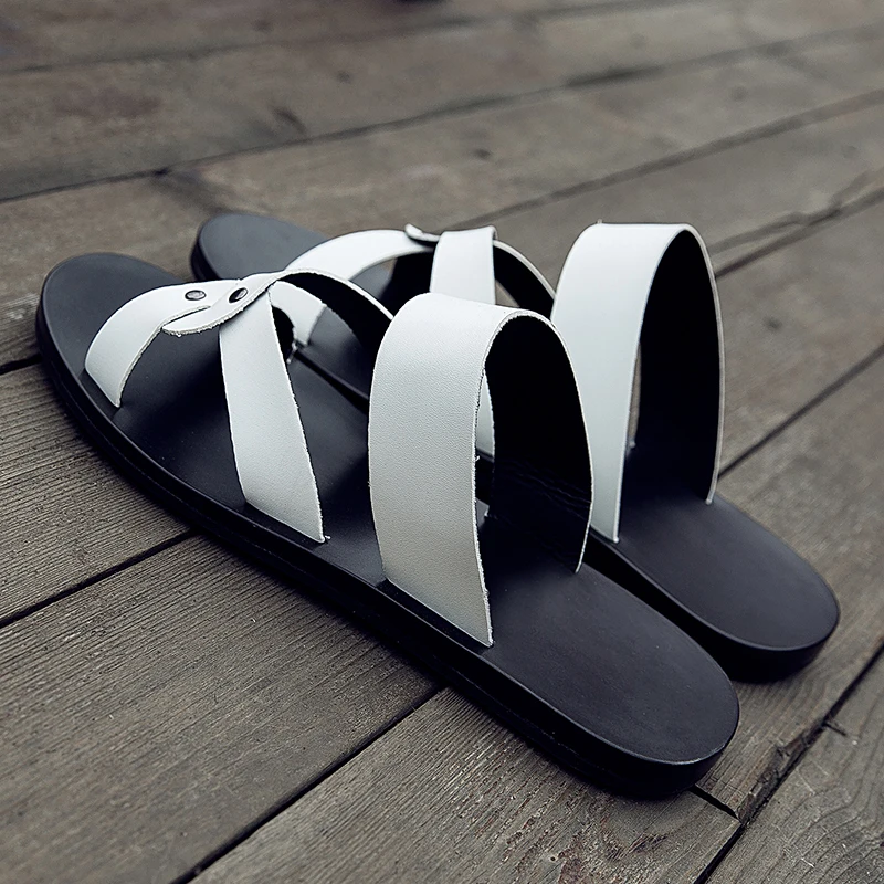 Мужские Нескользящие сандалии в Корейском стиле повседневные шлепанцы пляжные