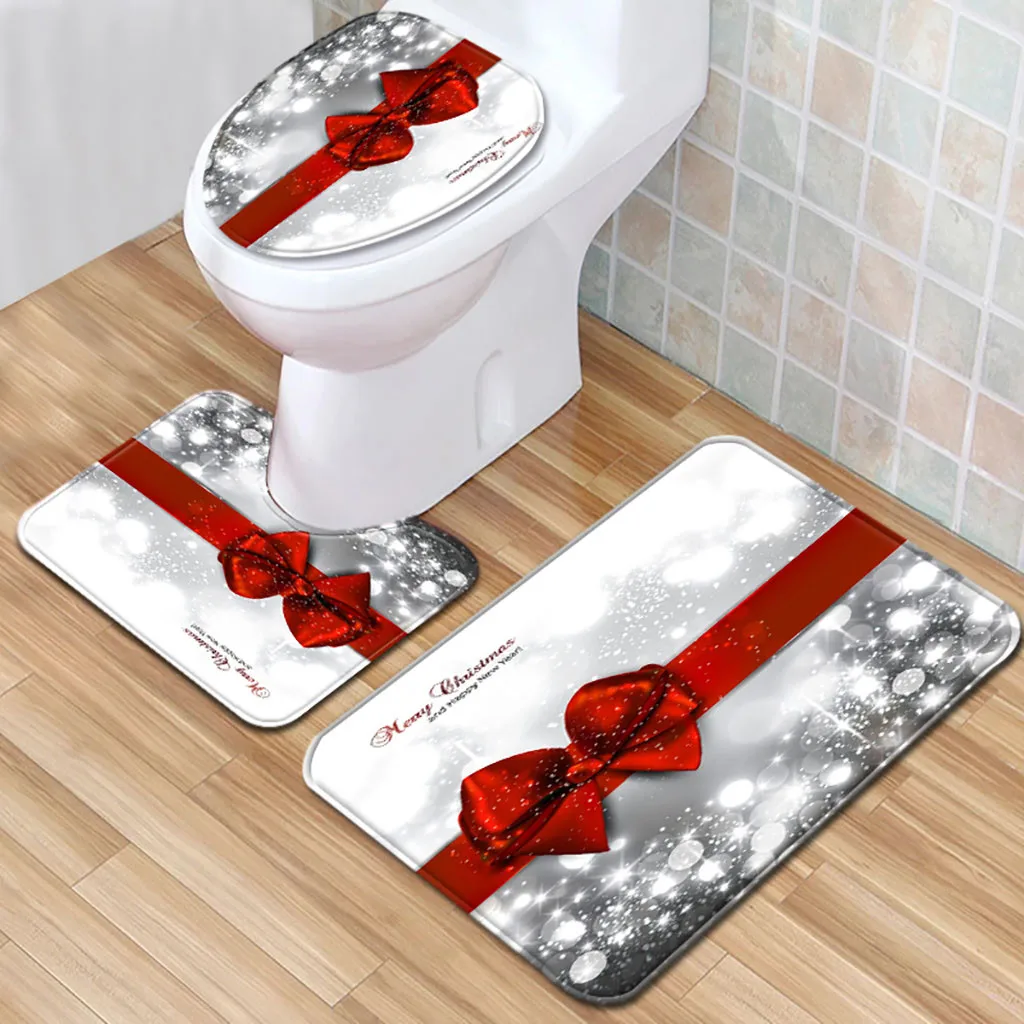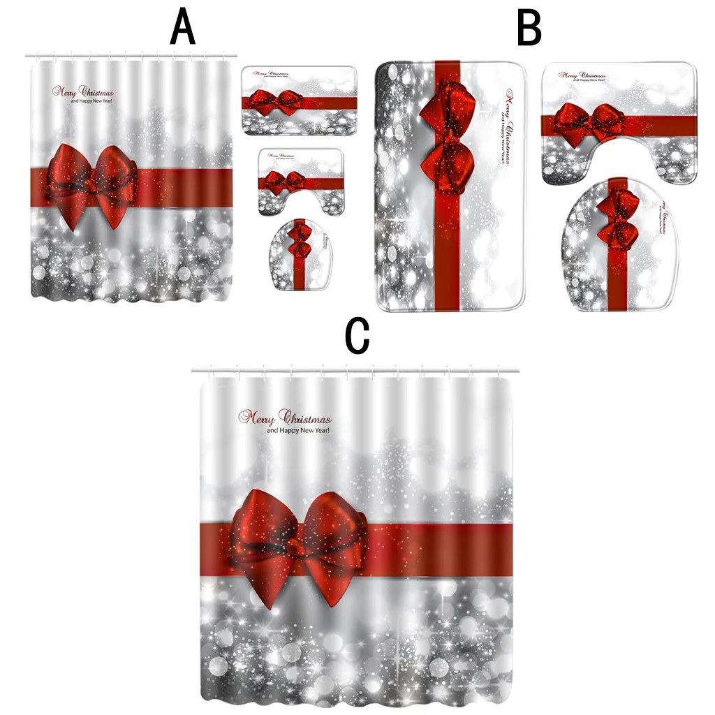 Коврик для ванной и душевой занавески с принтом Санты и банта, комплект из четырех предметов