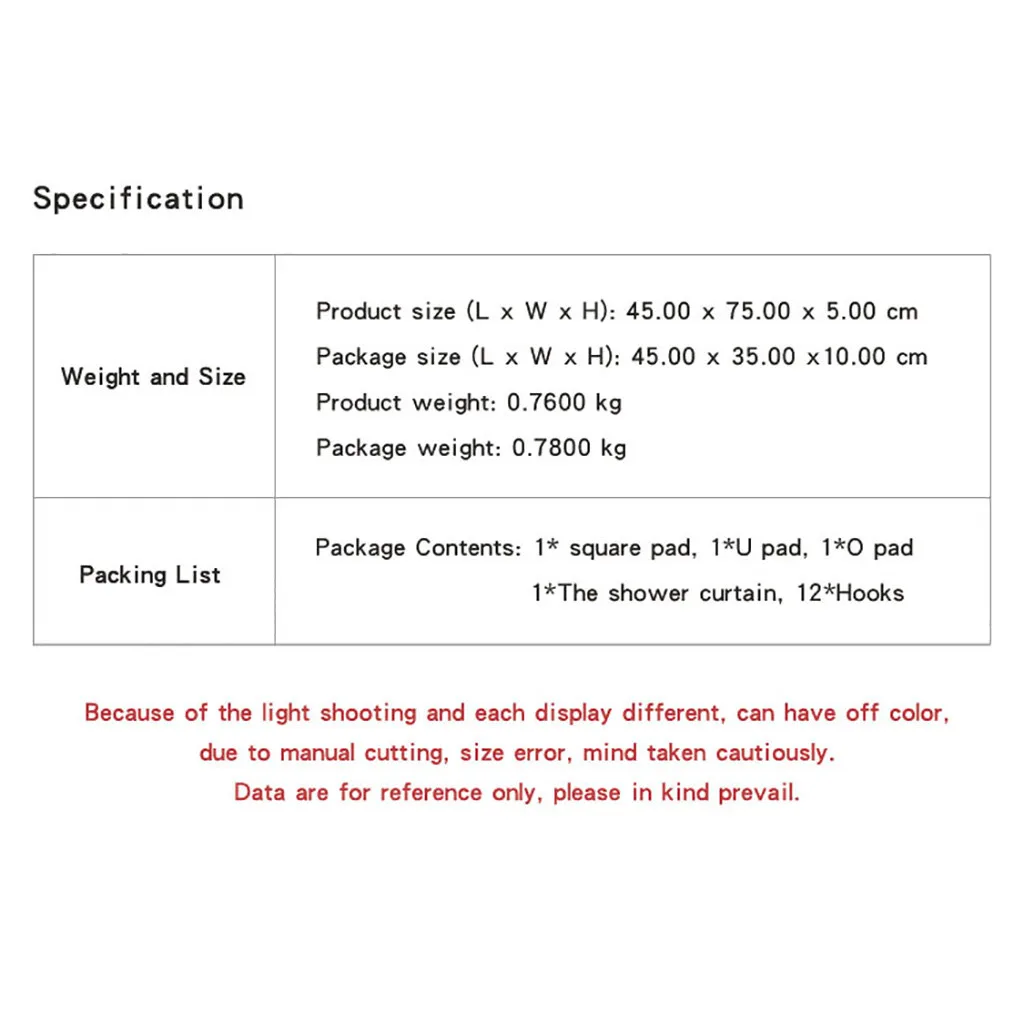 Занавеска для душа: 180X180 см/70,87X70,87 дюймаРазмер сиденья унитаза: 37X42 см/14,57X16,54 дюйма
