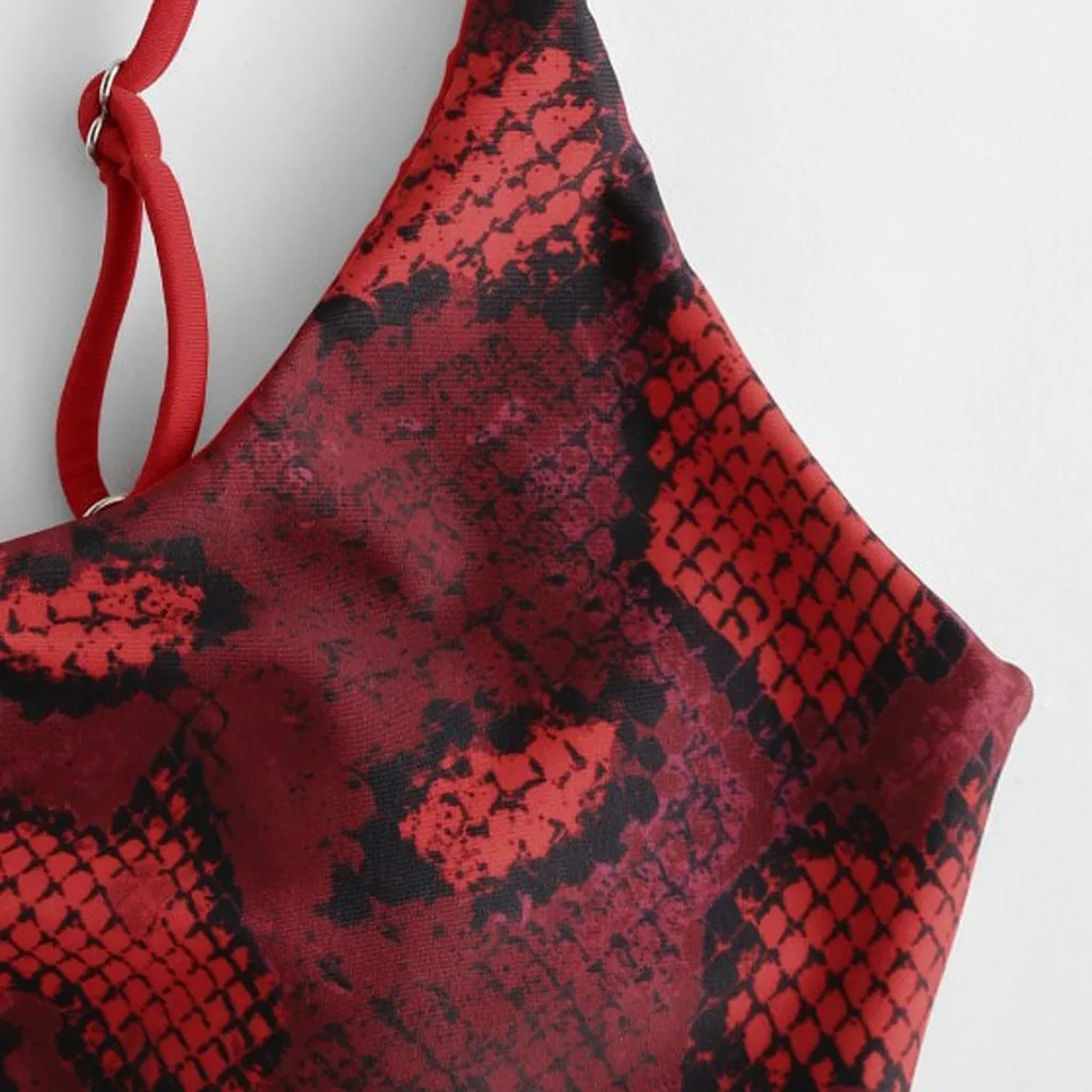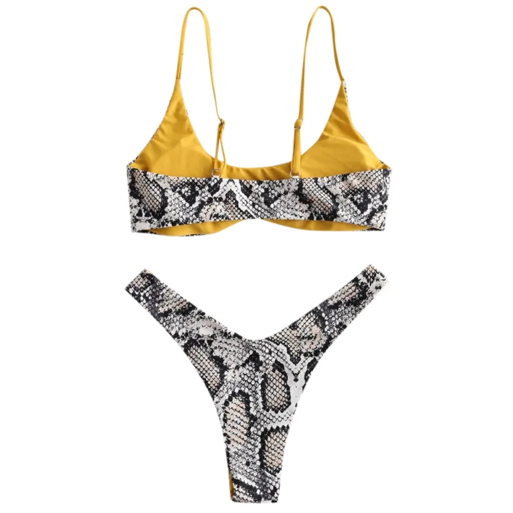 Женский купальник-бикини из змеиной кожи с высоким вырезом и v-образным вырезом, пляжная одежда