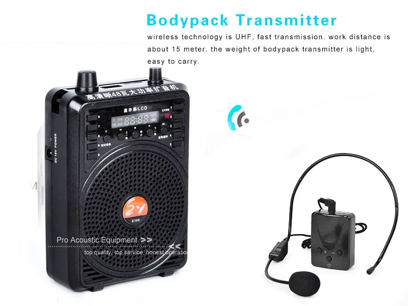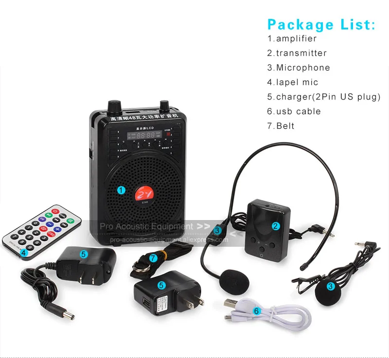 ● Поставляется с регулируемой талией или шейным ремешком и съемным зажимом для ремня, микрофоном для гарнитуры, удобен и идеально подходит для учителя, тренера, гидов, презентаций и т. д.