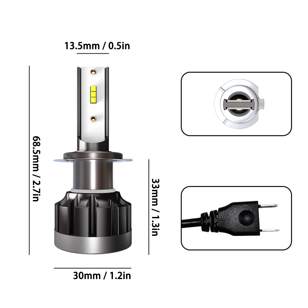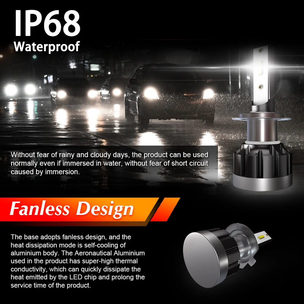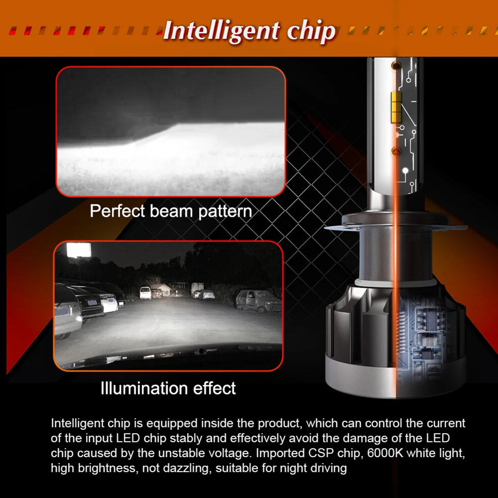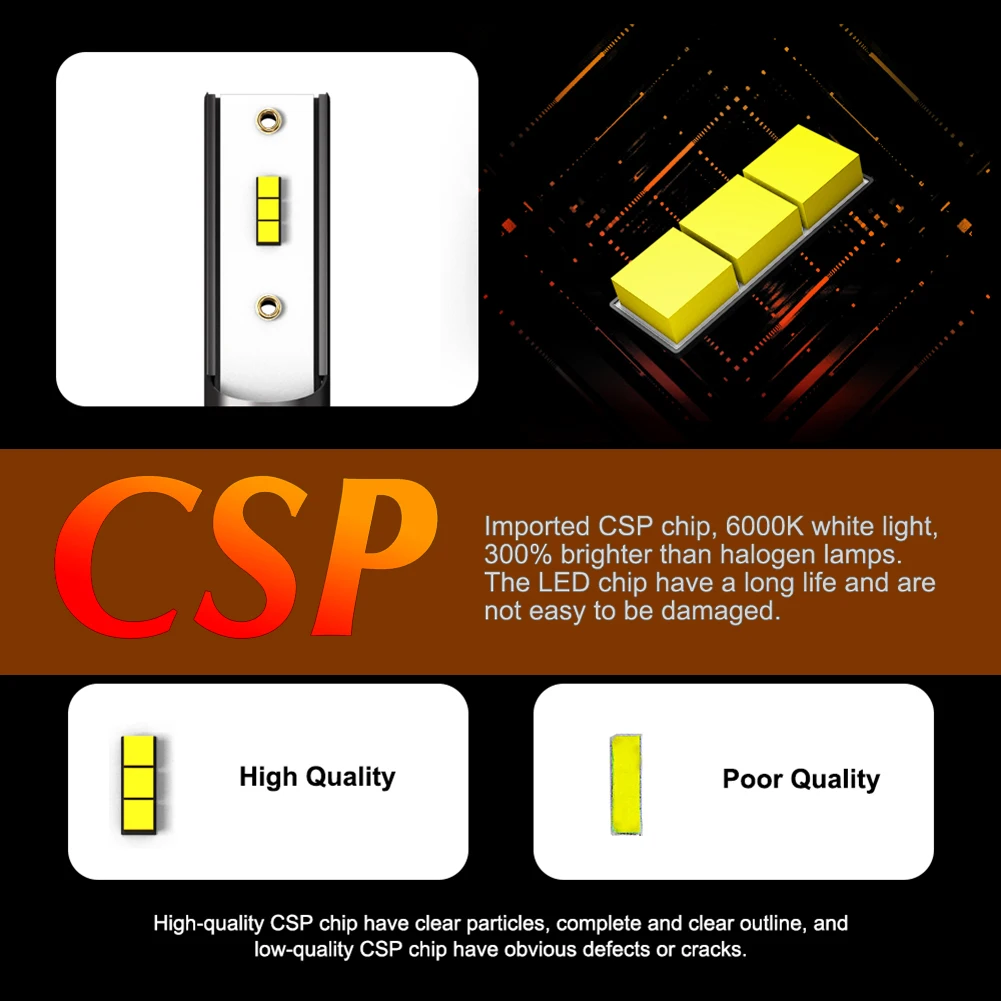 * 1. Высокая яркость, новейший светодиодный чип CSP с холодным белым чипом 6000K; На 200% ярче, чем галогенные фары, используемые в настоящее время. Технология 1901 обеспечивает идеальные шаблоны луча без черных пятен или противотуманных фар.