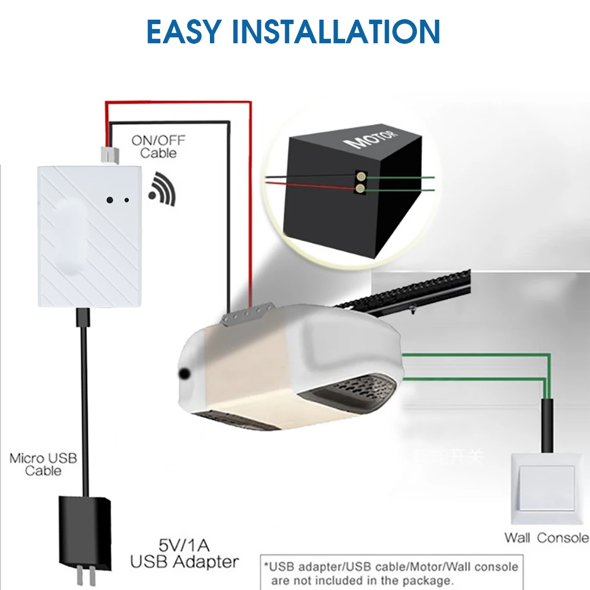 1 * WiFi умный открывалка для гаражных ворот 1 * комплекты монтажных аксессуаров 1 * датчики и кабель 1 * USB кабель 1 * Руководство пользователя