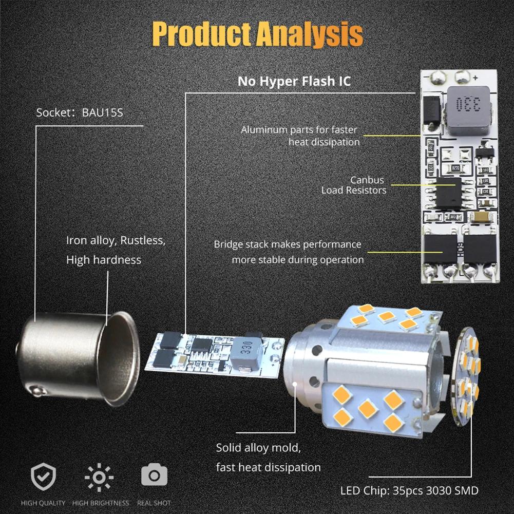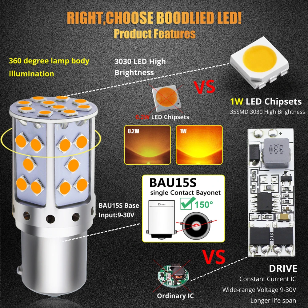* Эта Светодиодная лампа без гипервспышки не требуется резистор светодиодный указатель поворота питается от 35 штук по 1 Вт каждый 3030 SMD СВЕТОДИОДНЫЙ чипсет с чрезвычайно ярким великолепным янтарным свечением.