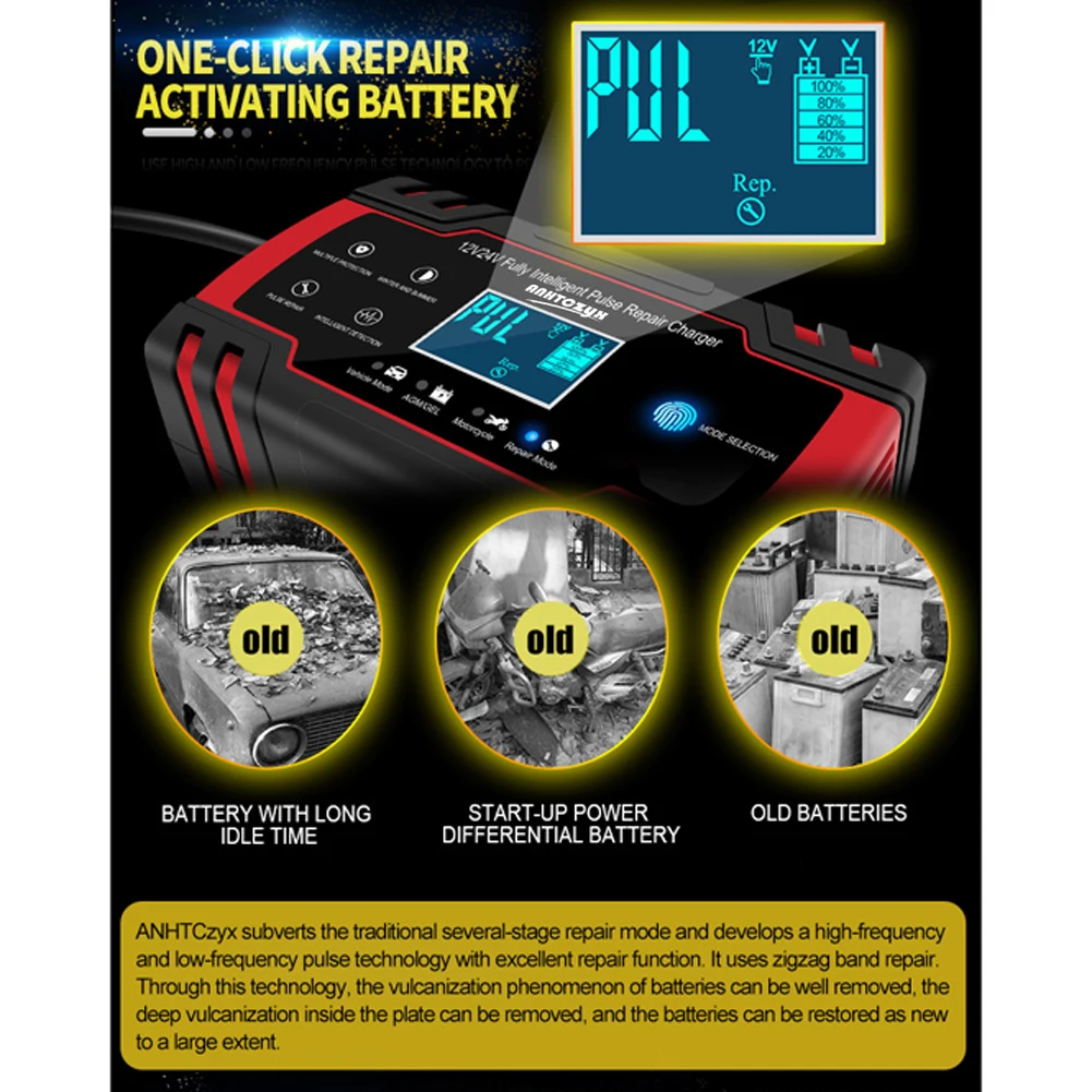 Типы батарей: большинство типов свинцово-кислотных батарей, включая кальций, гель и AGM, влажные, EFB и т. Д.