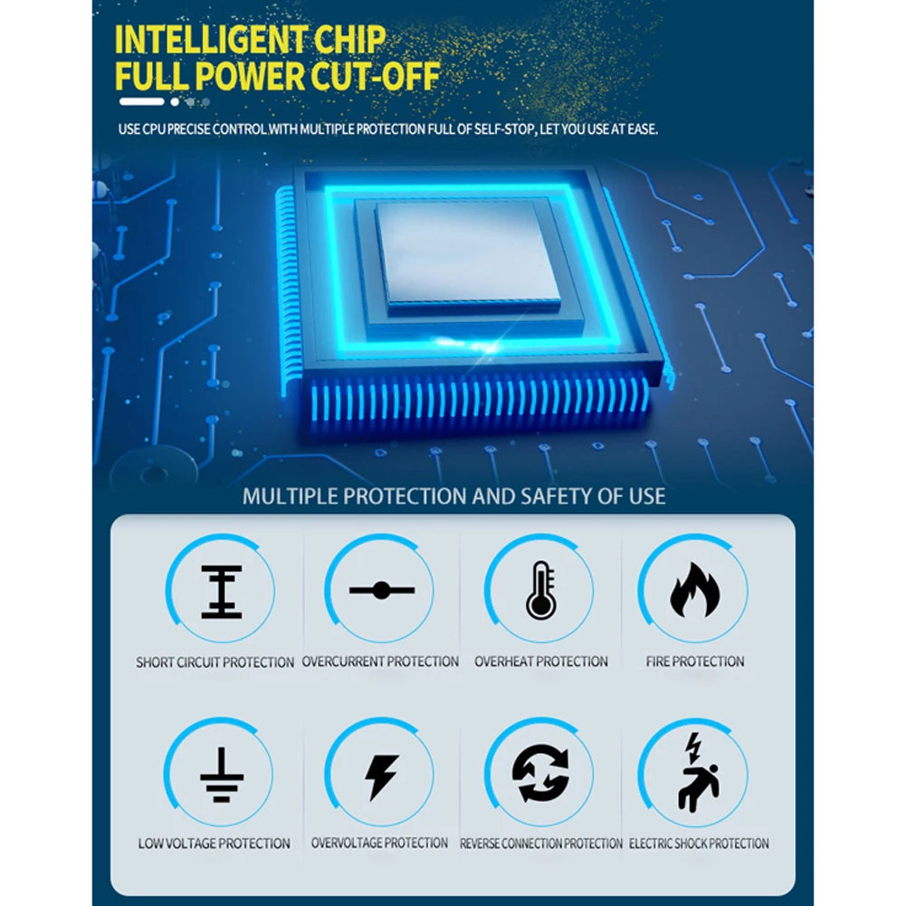 1. Принять огнестойкий корпус ABS, огнестойкий, электрошок, устойчивый к коррозии, прочный и прочный, Встроенный предохранитель для защиты цепи от обратной полярности, искры, перезарядки, перегрузки по току, открытого замыкания, короткого замыкания и перегрева. Примечание: Не заряжайте литиевый аккумулятор