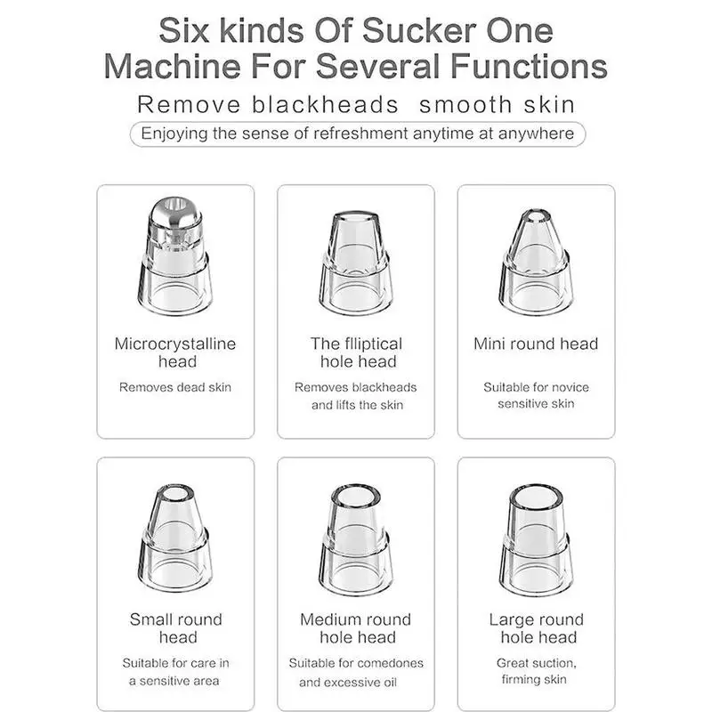 Шесть видов различных косметических головок для отшелушивания омертвевшей кожи и удаления черных точек.
