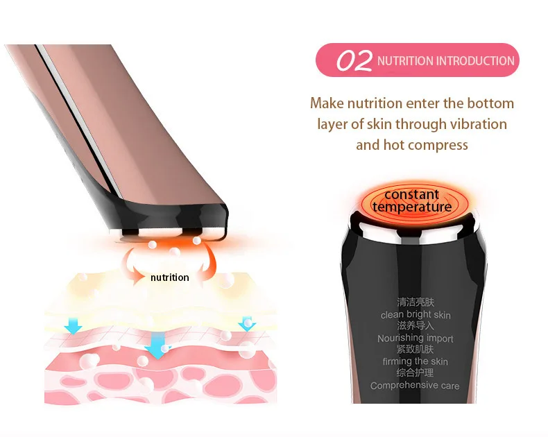 1. Очистите кожу, используйте звуковую волну вибрации для удаления пор грязи, сделайте кожу яркой и блестящей