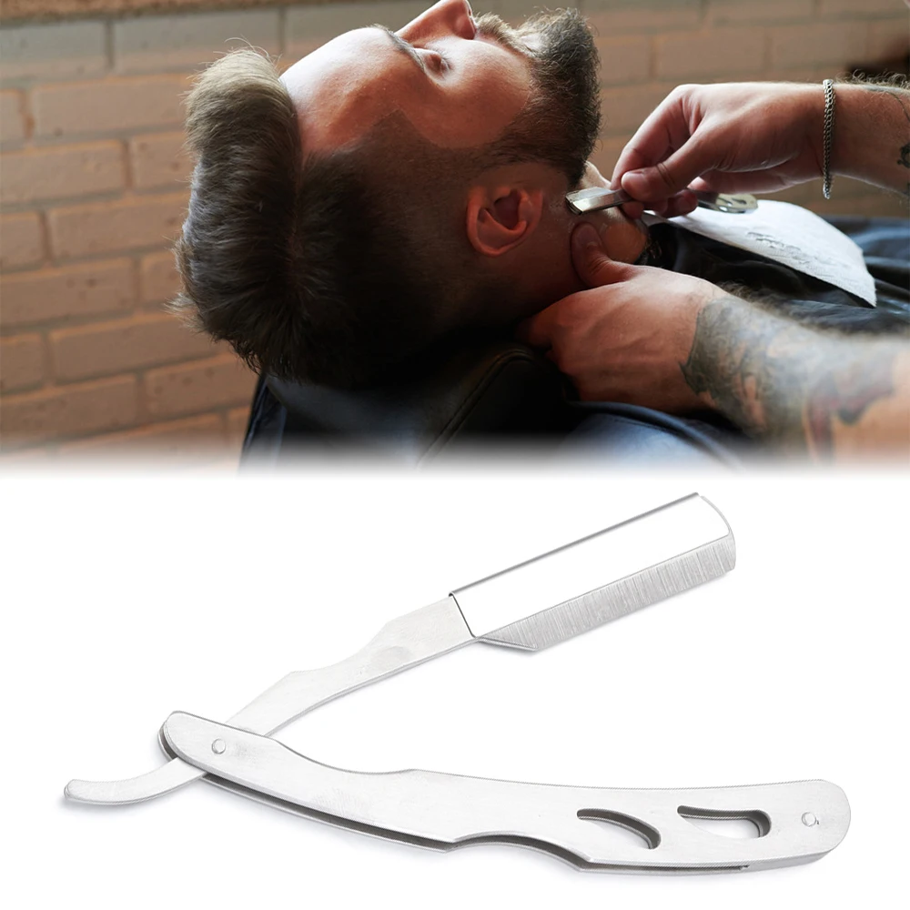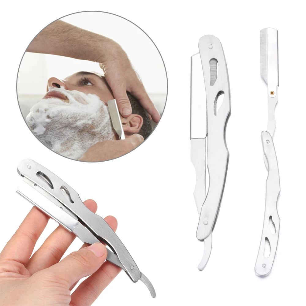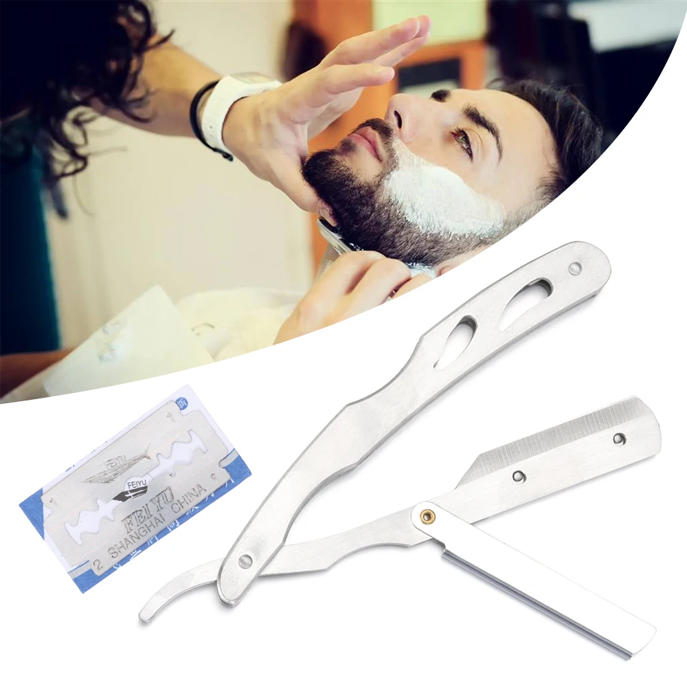 1 шт., ручная прямая бритва из нержавеющей стали для мужчин, бритва с бородой, для удаления волос, складной нож для бритья с лезвиями 10 шт.