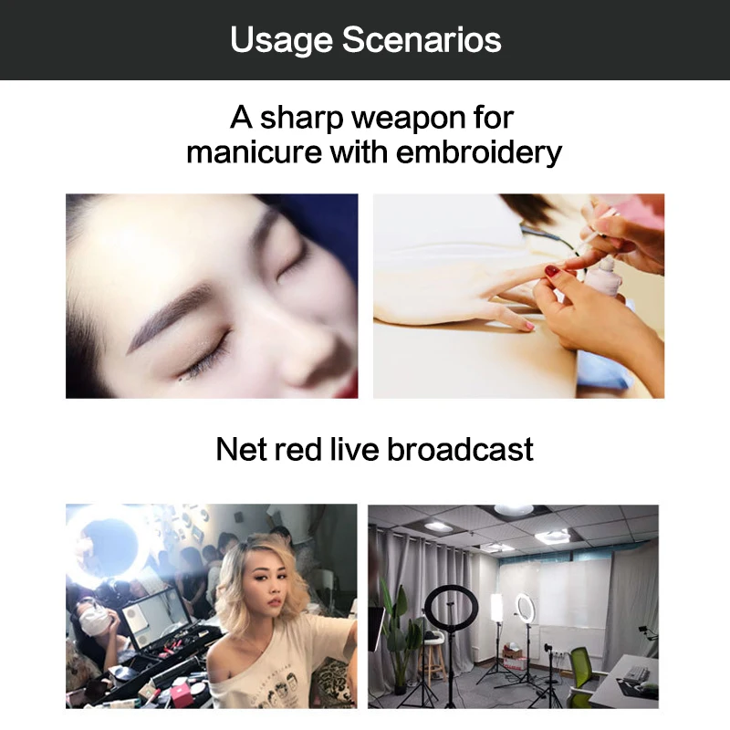 Примечание: Посылка не включает штатив, пожалуйста, обратите внимание Характеристика: Цвет: черный Светодиод: 224 светодиода Входная мощность: 110-240 В 50 Гц/60 Гц Выходная мощность: 40 Вт Цветовая температура: 3000K-6500K Индекс вспышки: RA>90 Посылка включает: 1 * Светодиодный кольцевой светильник 1 * кабель питания 1 * зажим для телефона 1 * упаковочная коробка