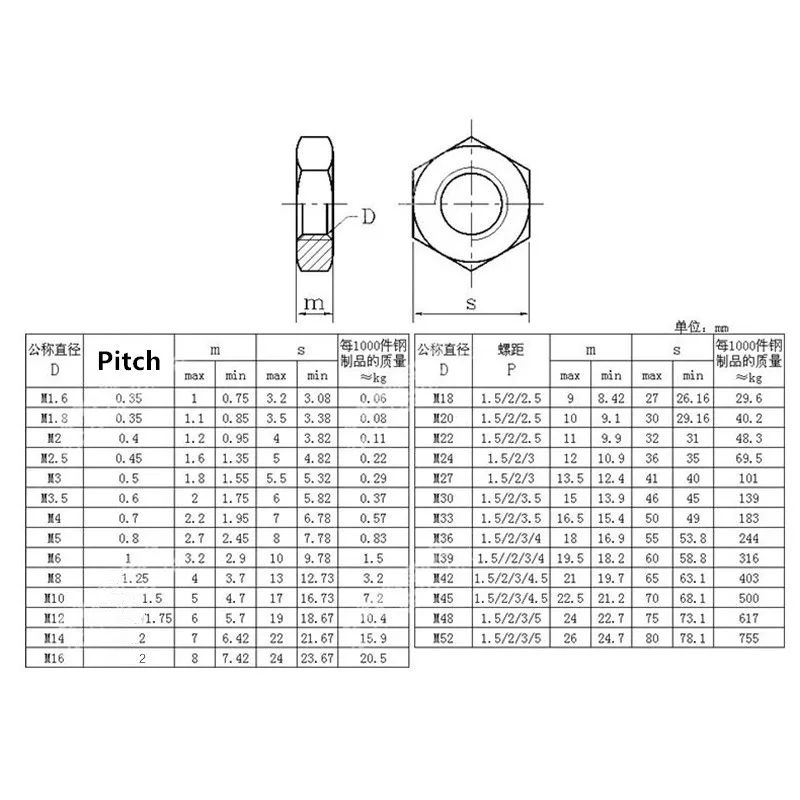 GB6172 DIN439 Шестигранная тонкая гайка M3/M4/M5/M6-M30 Шестигранная гайка тонкие шестигранные гайки 304 Метрическая резьба из нержавеющей стали
