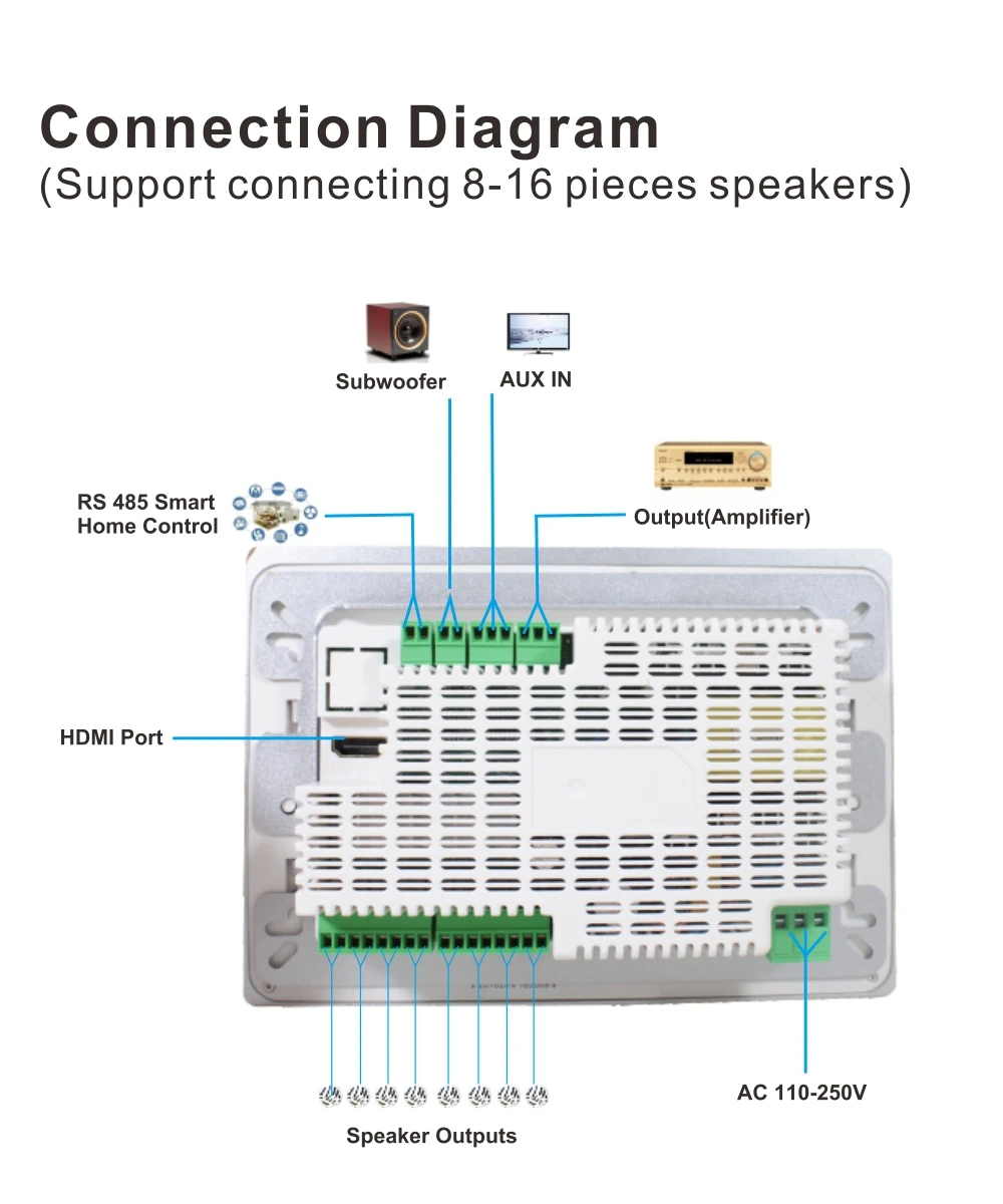 Эта 8-канальная небольшая мультидомашняя аудиосистема bluetooth оснащена портом USB/TF, который может заряжать от 8 до 16 динамиков в вашем доме или в небольшой коммерческой зоне. Он использует высокоэффективный усилитель класса D для максимальной выходной мощности 8*25 Вт, динамики с низким сопротивлением. Крутой дисплей может показать соответствующую информацию о треке музыки. Кроме того, вы можете управлять всем-искать, менять треки и регулировать громкость-с помощью прилагаемого беспроводного инфракрасного пульта дистанционного управления.