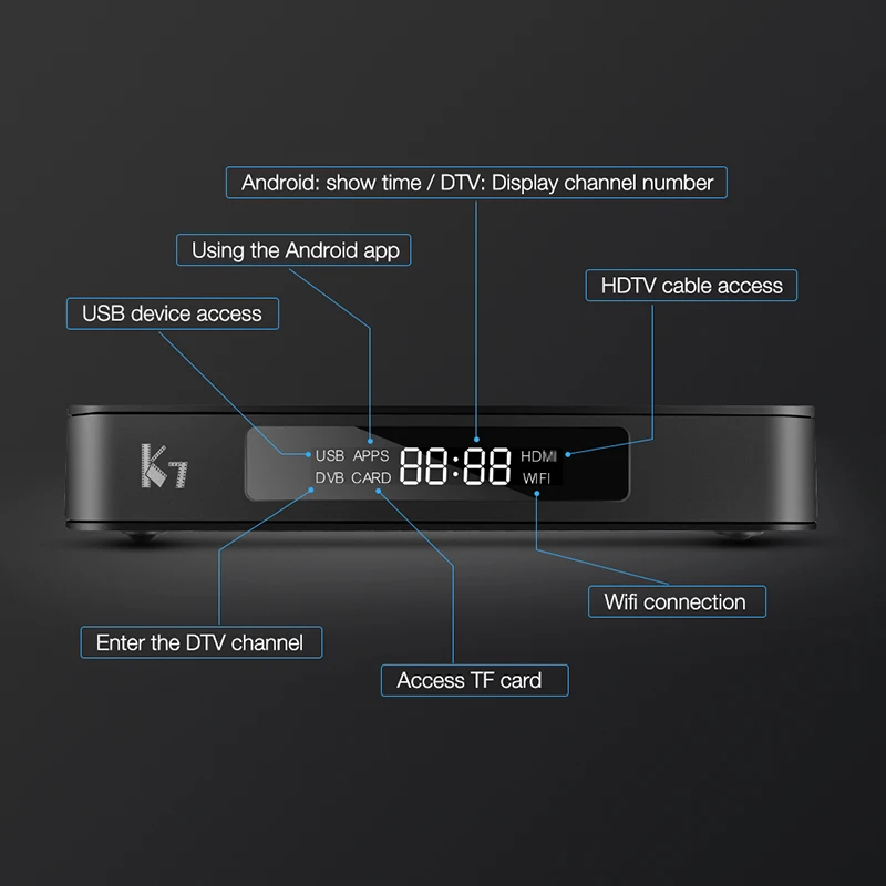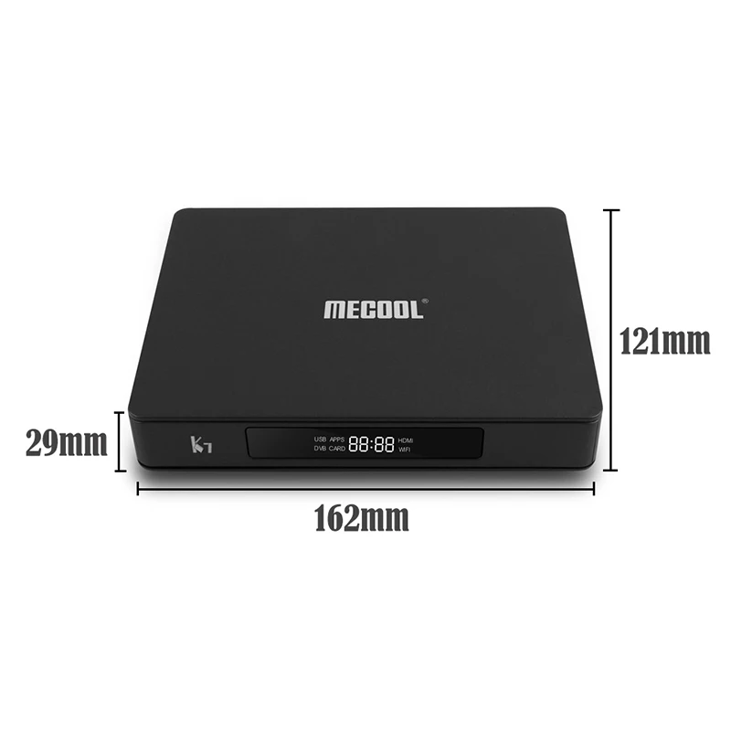 Спецификации оборудования Процессор Hisilicon HI3798M 64-разрядным четырёхъядерным высокопроизводительный ARM Cortex A53 Графический процессор Интегрированный высокопроизводительный многоядерный графический процессор Mali 450 Оперативная память 2 Гб DDR3 Встроенная память 16 Гб Wi-Fi Встроенный 2,4G/5G Wi-Fi Поддержка IEEE 802,11 b/g/n/ac LAN Ethernet 10/100 м Светодиодный индикатор Светодиодный сегментные дисплеи Основные Особенности OS ОС Android 7,0 Видео декодер Двигатель HiVXE 2,0 для обработки H.265/hecvc Main/Main 10 профиль @ level 5,1, высококачественный H.264/AVC BP/MP/HP @ level 5,1, H.264/AVC mcvc Максимум 4K * 2K @ 60 fps 10-битная декодирования 4K * 2K @ 60 fps 10-битная VP9 декодирования Видео encorder H.265 MP @ level 5 main tier и H.264Mecool K7: Спецификации оборудования Процессор Amlogic S905X2 Четырехъядерный процессор ARM Cortex-A53 Процессор Графический процессор Рука Mali-G31 MP2 GPU SDRAM (синхронное динамическое ОЗУ) 4 ГБ LPDDR4 Флэш-память 64 Гб памяти на носителе EMMC Blutooth Bluetooth 4,1 Wi-Fi Встроенный 2,4G/5G Поддержка Wi-Fi 2T2R IEEE 802,11 b/g/n/ac LAN Ethernet 1000 м Основные Особенности OS Android 9,0 Видео декодер Аппаратные средства декодеров -Профиль VP9-2 до 4K x 2K @ 60fps