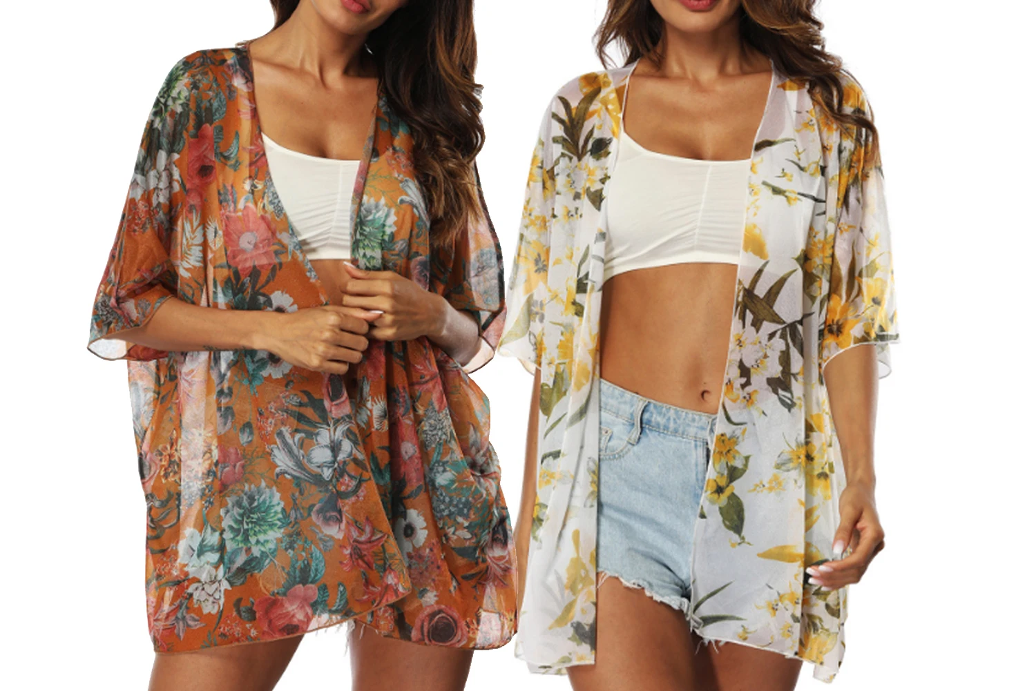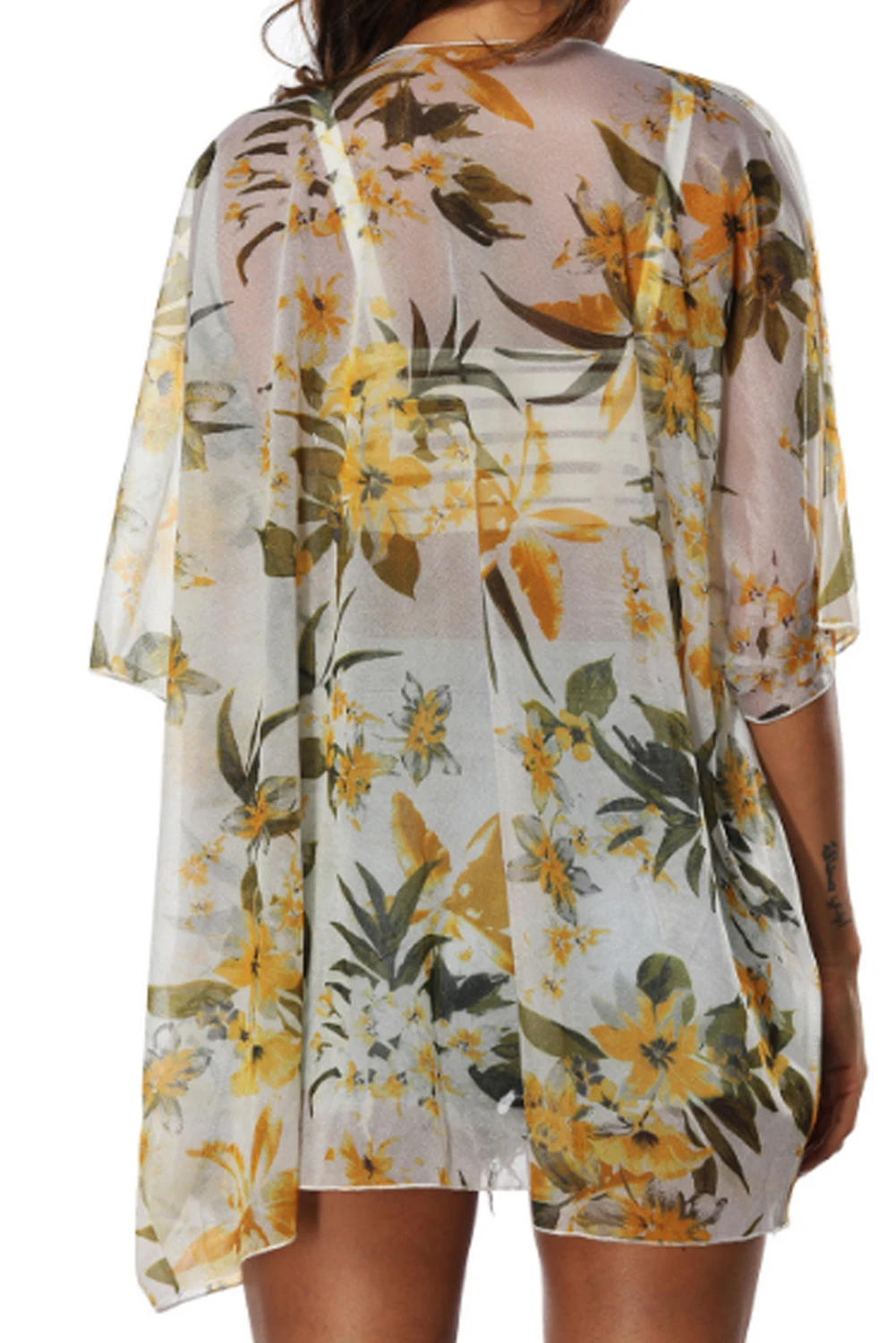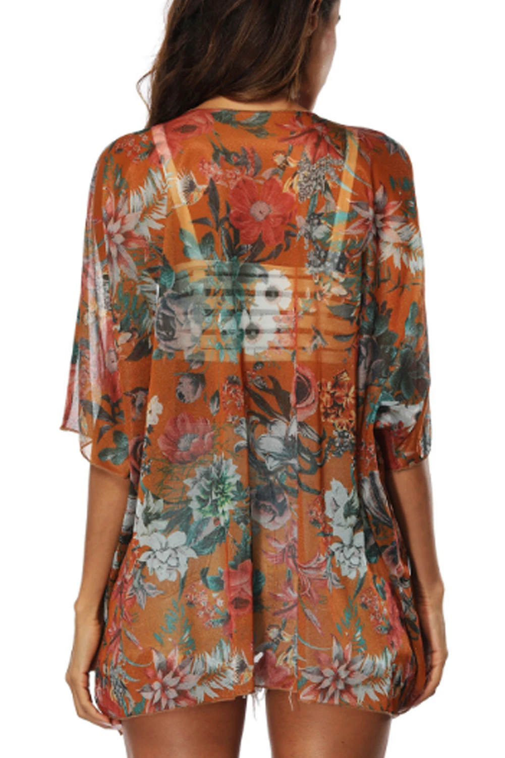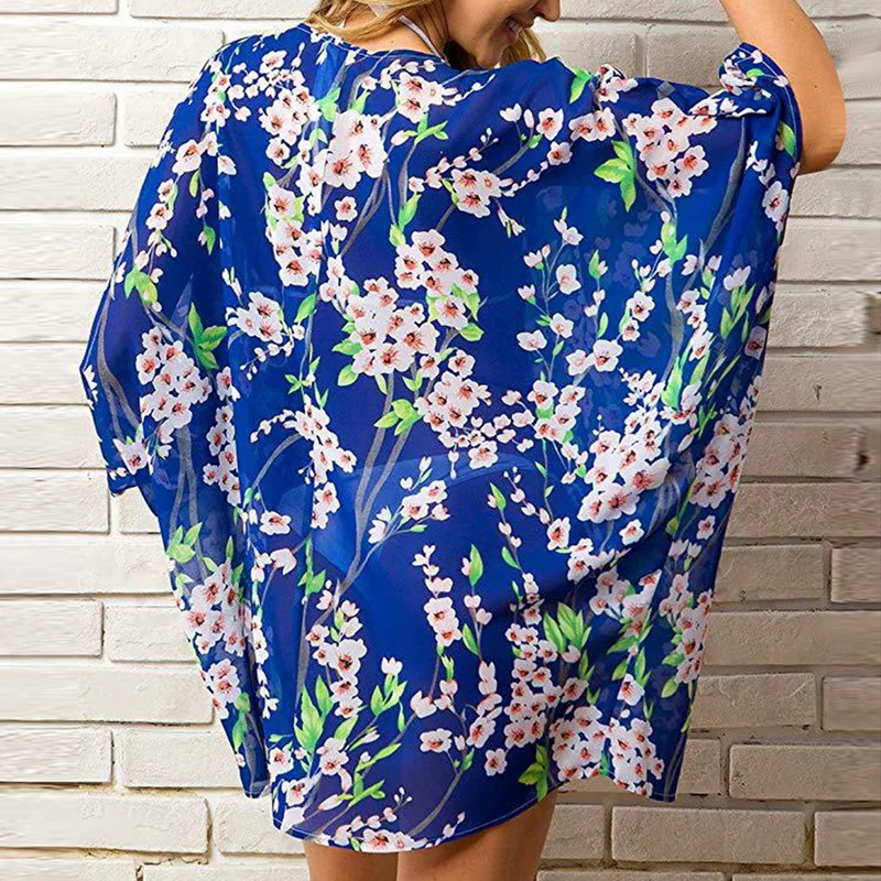 Womens Printing Loose Cover Ups Half Sleeve Shawl Chiffon Cardigan Blouses Casual Beach Outwear Sexy Swimwear