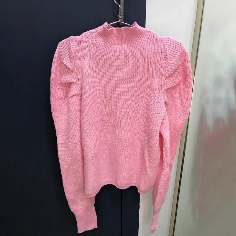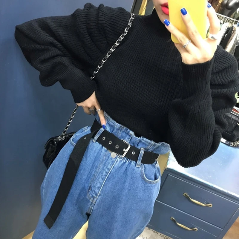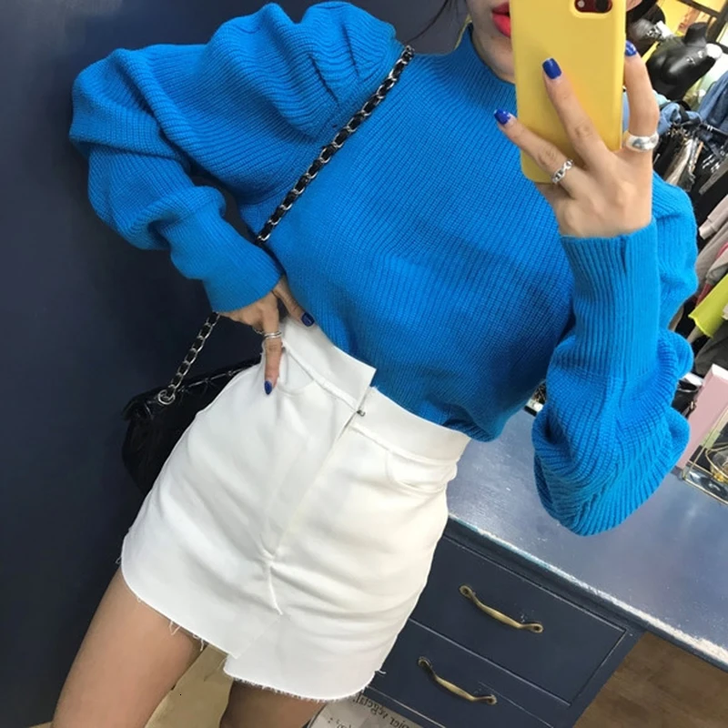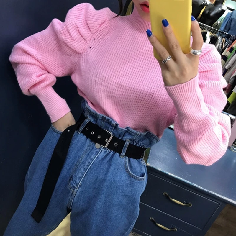 Винтажные минималистичные женские свитера с круглым вырезом и пышным длинным рукавом, Корейский Осенний пуловер большого размера, Женская мода 2020, новая одежда