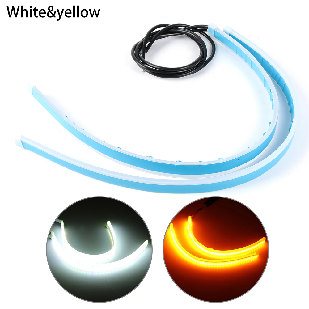Три режима Ультратонкий автомобиль мягких туб Светодиодные ленты DRL сигнальные лампы дневного света светильник "бегущая вода", автомобильные аксессуары