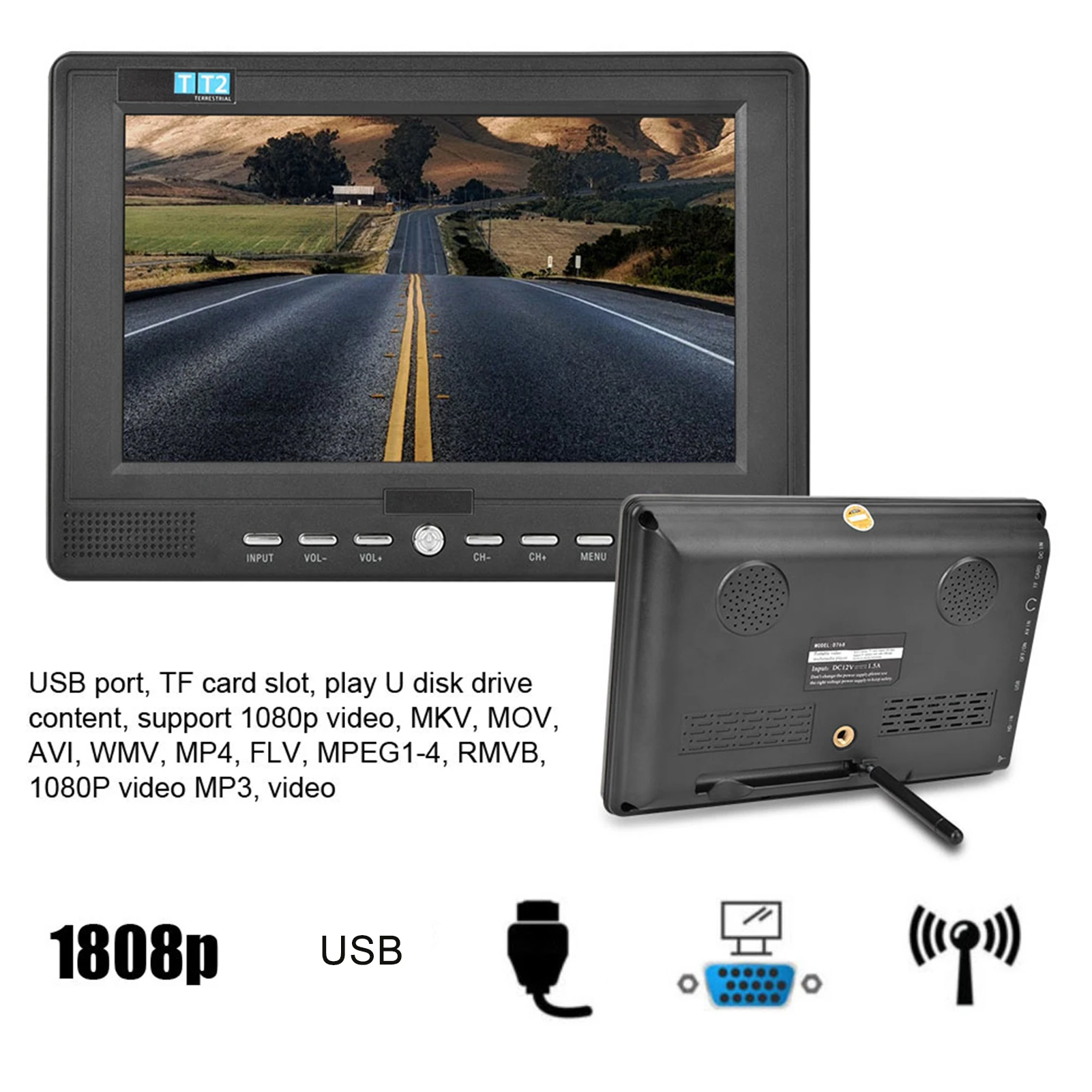 Портативный телевизор, совместимый с DT/T2, может смотреть аналоговый телевизор, цифровой телевизор и телевизор.