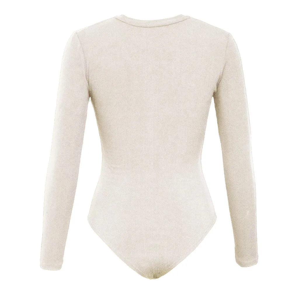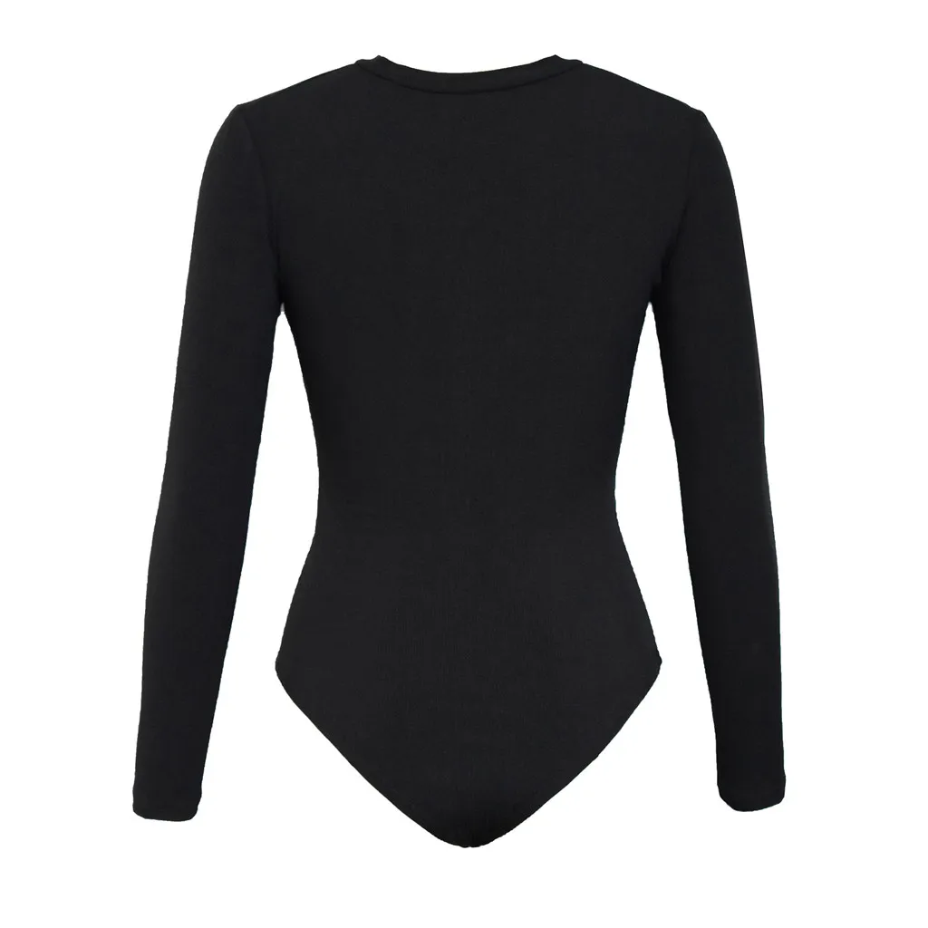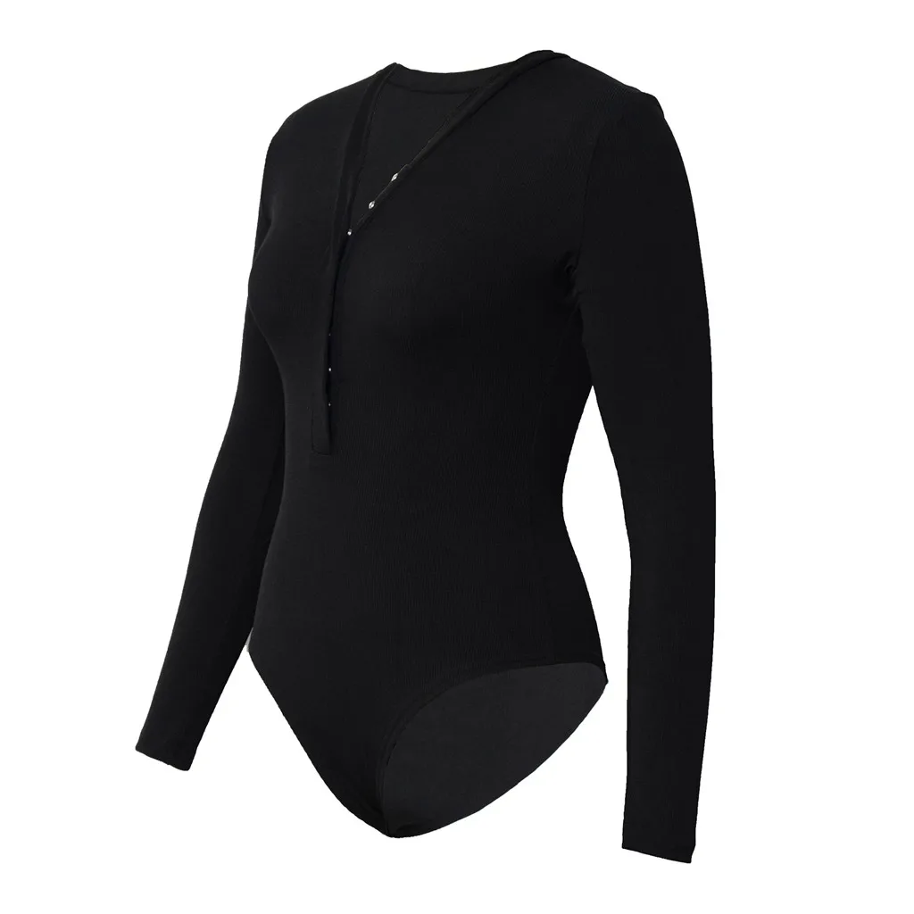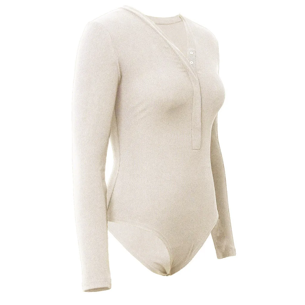 Женский боди на пуговицах, сексуальный осенне-зимний приталенный однотонный комбинезон с v-образным вырезом и длинным рукавом, боди de Mujer, новинка 2020, E