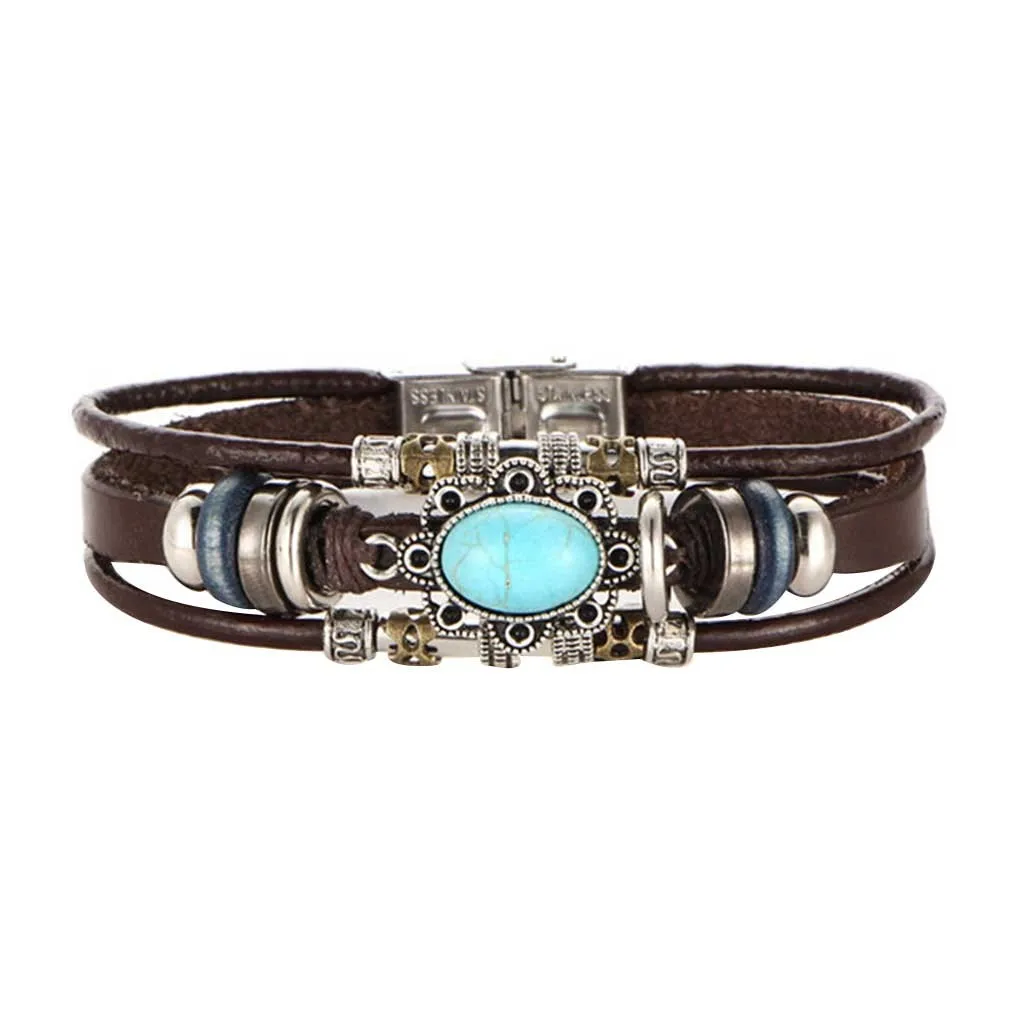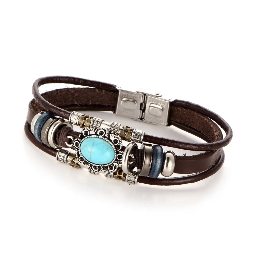 Кожаный браслет креативная Ретро панковские Серьги со вставками в форме овала, Бирюзовый кожаный браслет