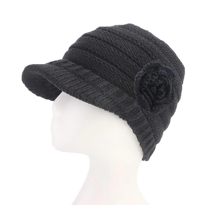 Зимняя вязаная шапка с цветочным принтом, берет, тюрбан, Женская Повседневная однотонная шапочка