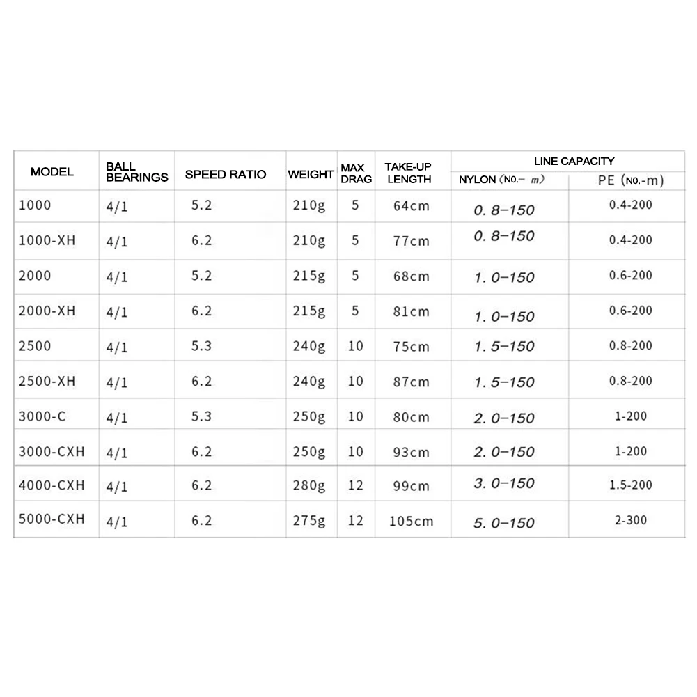 5. Sizes range from 1000 to 6000