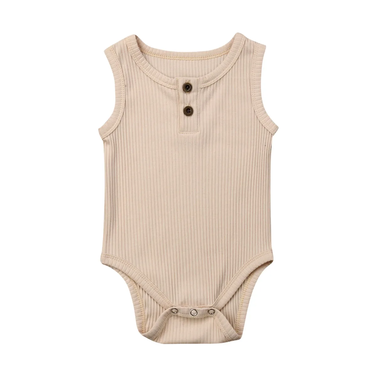 От 0 до 24 месяцев, для новорожденных, младенцев и малышей Одежда для маленьких мальчиков и девочек Однотонные ползунки Карамельный цвет комбинезон без рукавов, костюмы Летняя одежда, летний пляжный костюм