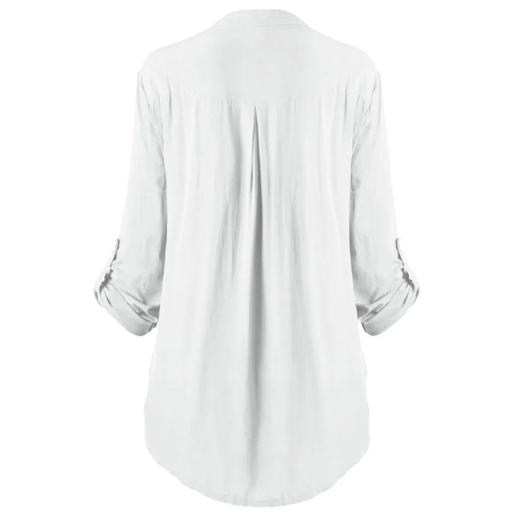Женские блузки, рубашки, весна-лето, блузы, офисные женские элегантные свободные топы и блузки, хлопковая льняная Джинсовая туника, рубашки с длинными рукавами