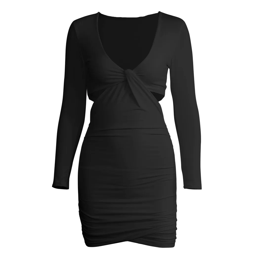 1. Модное повседневное, с v-образным вырезом, с длинным рукавом, однотонное, необычное, с открытой спиной мини-платье.